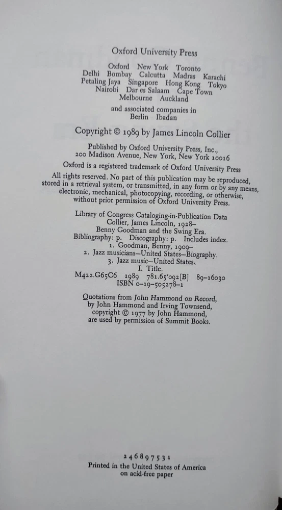 Benny Goodman and the Swing Era by James Lincoln Collier Illustrator- Copyright/Edition- 1989/Hard Cover 1st Edition Condition- Very Good Dustjacket/Condition- Yes/Minimal Wear Other- New/Mint- Book and dust jacket should be in the same condition as published. Like New/Fine- Book and dust jacket should be without noticable flaws or defects. Very Good- A used book that shows minor wear but has no tears to the binding, book pages or dust jacket. Good - Average used book. All pages must be present.May have light staining, small tears with no tape, minor marking some chipping to spine cover. Fair/Acceptable- A used book that has all the text pages intact but may be missing a title page, end-papers, etc. May be missing dust jacket. Damaged but readable. OTHER •Ex-Library. Former library copy; the should always be noted regardless of the books condition. •Book Club. This edition must always be noted regardless of the books condition. Generally a Book Club Edition (BCE) will be smaller in size and will not have a price on the inside corner of the dustjacket. •Binding Copy. Pages may be fine but the binding is loose or detached. Hello Friends Just a quick rundown of my policies and whatnot past the posted Ebay stuff. First a lot of the items I generally have listed for sale are pre-owned and sourced from various places. I try to describe these items accurately and include any flaws that I can see feel or smell (I am not a super smeller but I try). All items including clothing and cloth items have been washed or sanitized to the extent I can clean them without causing damage. Even so I might miss something. So please inspect the photos before you buy and drop me a note if your concerned or have question about anything. Special note to book buyers... I love books!! That being said I am not an book expert... I know some things but if your a collector and need extra photos or info on specific condition or markings etc, don't hesitate to ask. I want you to be happy with your purchase! Payments are due within seven days of sale in most cases. To avoid unpaid item claims please let me know if you have any questions about payment or if your payment will be delayed. Shipping charges are based on the items weight. Most items will ship within 3 days by USPS and include tracking information. Combined shipping is available based on weight and shipping method (priority, first class, media etc). Free shipping insurance is included on domestic orders over $50. I accept returns on most items. So let me know if there are any issues with your order. Thanks so much! Bronwyne