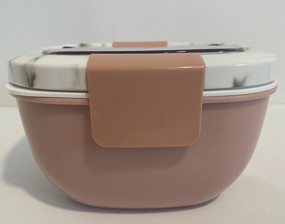 Features: Dishwasher Safe, Easy Clean, Easy to Clean, Microwaveable, Microwave Safe, Multipurpose, Reusable, Waterproof, With Lid Color: Pink Type: Bento Box Material: Plastic Number of Items in Set: 7 Brand: N/A Set Includes: Dressing Container, Fork, Lid, Bowl, Compartment Dish Shape: Square Item Width: 6.8 in Capacity: 52 oz Lid Type: Snap Lid Number of Compartments: 5 Item Height: 3.5 in Style: Art Deco