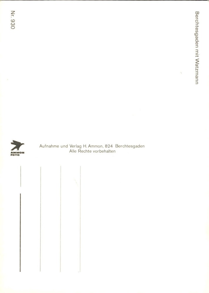 Scenic view of Berchtesgaden featuring the majestic Watzmann mountain. Published by H. Ammon in 824 Berchtesgaden. All rights reserved.