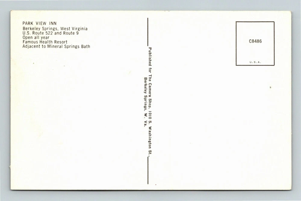 Berkeley Springs WV-West Virginia, Park View Inn, Vintage Postcard