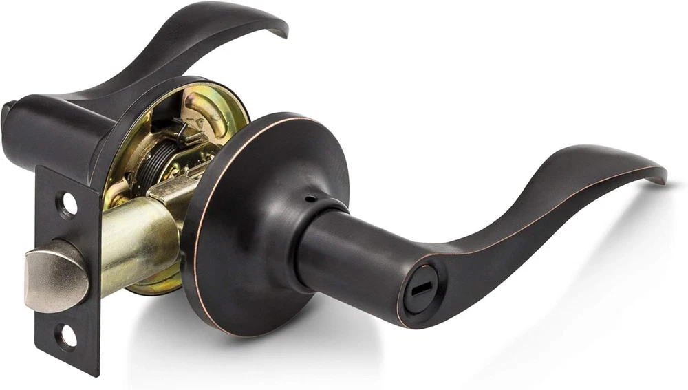 Berlin Modisch Privacy Lever Door Handle Privacy, Oil Rubbed Bronze Finish Product Details Material: Bronze Brand: Berlin Modisch Color: Oil Rubbed Bronze Finish Product Dimensions: 8"L x 1"W Exterior Finish: Bronze Specific Uses For Product: Bathroom, Bedroom Special Feature: Easy to Install, Durable Included Components: Knob, Latch, Key, Lock Lock Type: Key Lock Theme: Modern & Conventional Designs Item Weight: 1.6 Pounds Metal Type: Bronze Handle Material: Bronze Hand Orientation: universal Package Type: Standard Packaging Unit Count: 1 Count Number of Items: 1 Manufacturer: Berlin Modisch Item Depth: Approximately 1.5 to 1.75 inches Part Number: BM102 Item Weight: 1.6 pounds Is Discontinued By Manufacturer: No Size: Privacy Finish: Oil Rubbed Item Package Quantity: 1 Number Of Pieces: 1 Special Features: Easy to Install, Durable Batteries Included?: No Batteries Required?: No Material: Bronze Brand: Berlin Modisch Color: Oil Rubbed Bronze Finish Product Dimensions: 8"L x 1"W Exterior Finish: Bronze StyleHandle Type: Adjustable,Classic,Modern,Portable,UniqueKnob, Lever ShapeFinish Type: RoundOil Rubbed Privacy - [Easy to open lock no key required] Designed to complement both conventional and modern style interior doors for commercial and residential applications Includes a reversible handle that makes it perfect for fitting left or right handed doors Uniquely crafted door lever privacy Set With 2 3/8 inch- 2 3/4 inch adjustable backset latch and square corner striker Comes with unique turn-button interior knob that may be opened by an exterior emergency key Durable & Portable Oil Rubbed Bronze Finish handle which Fits 1-3/8-Inch-1-3/4-Inch doors. Berlin Modisch Privacy Lever Door Handle [Thumb Turn Lock on The Inside] for Bedroom or Bathroom with a Satin Nickel Finish, Reversible for Right & Left Side, Classic Series Product Description: This Premium Quality Privacy Lever door handles features a special wave-styled, with an amazing oil rubbed bronze finish. This hardware piece is fully fitted with an adjustable latch of 60/70mm. and a radius square corner strike. Package Includes: * Privacy Lever door handle (reversible) * Radius square corner strike (with latch box) * Diagram template for installation From the manufacturers: Our Premium Quality Wave-Styled privacy door knobs is an ideal decorative accessory, professionally designed to perfectly compliment a wide range of traditional and modern residential interior doors. This deluxe hardware is creatively fitted with a, reversible, lever handle designed to perform very efficiently, whether it receives a left-handed or right-handed application. This original lockset comes with a unique lock for the interior knob that can easily be opened by the exterior in case of emergency. It also features a special square-corner striker and an incredibly adjustable dead-latch style which is 60/70mm. and is designed to fit doors between 1-3/8 inch and 1-3/4 inch. It has a Oil Rubbed Bronze finish and is protected by a clear powder coat finish.