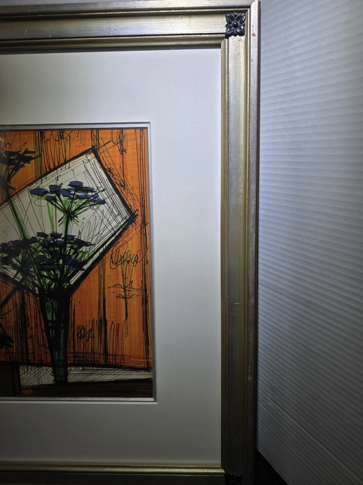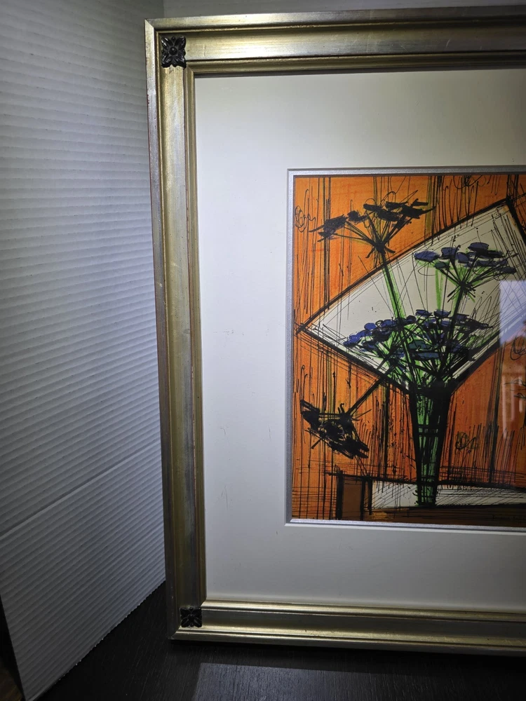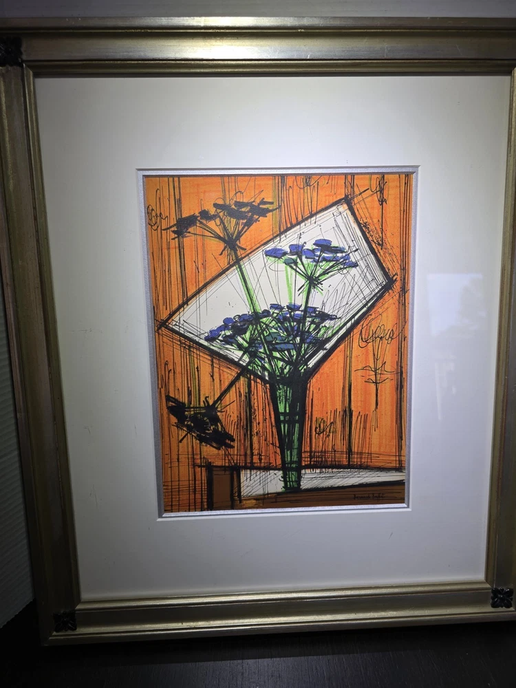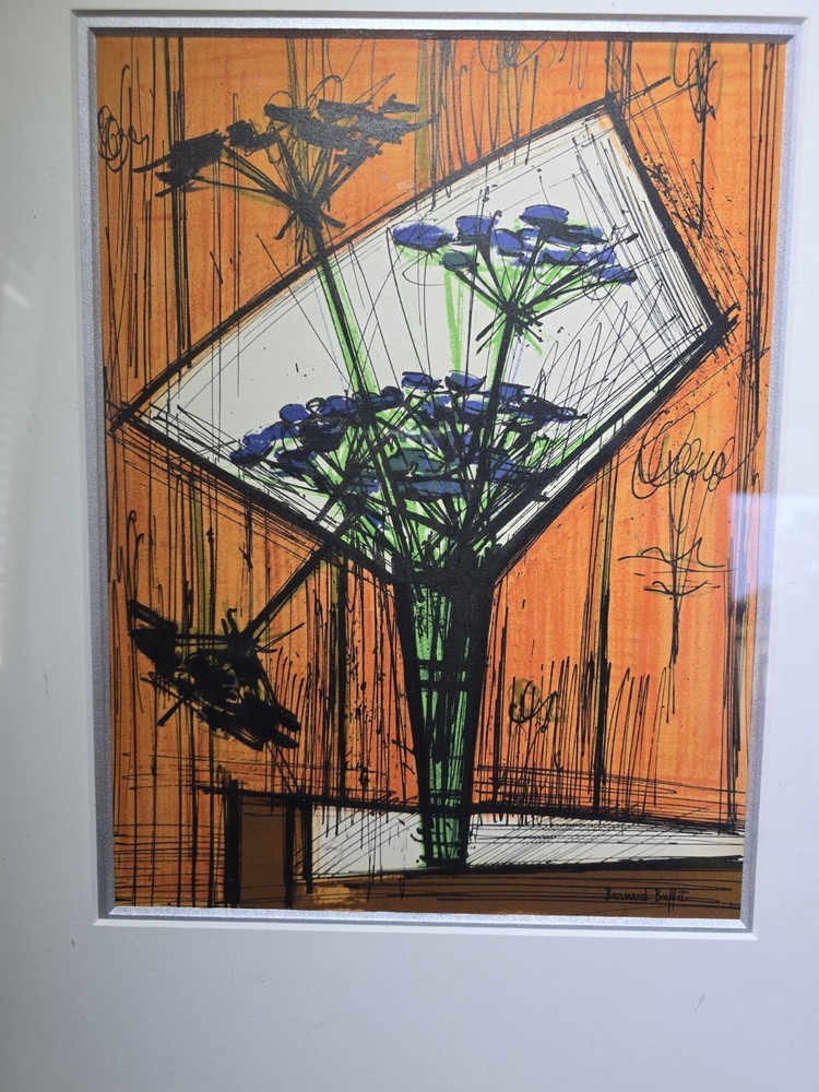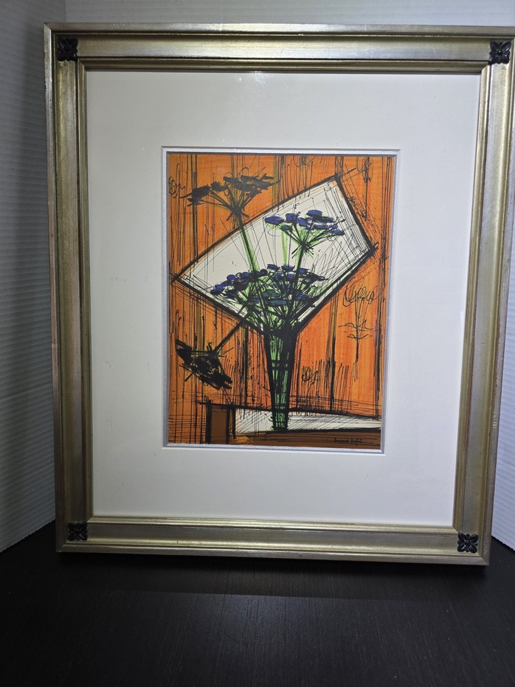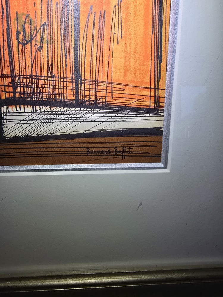 The product is a limited edition lithograph framed picture titled "Souvenirs ET Portraits D'Artistes Paris" by artist Bernard Buffet, created in the post-war period of 1940-1970. This original print depicts Paris as the subject, featuring a portrait orientation and signed by the artist. Made on paper in France, this piece is a unique and collectible item for art enthusiasts, showcasing the artist's work in showcasing the theme of art in a framed format.