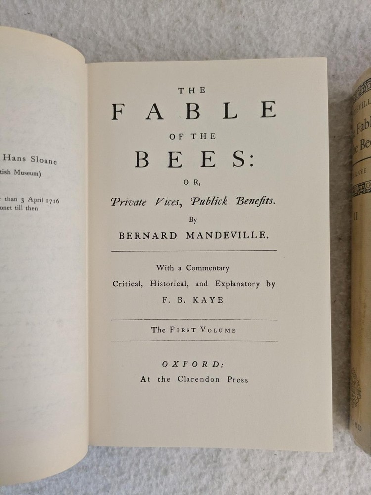 Bernard Mandeville THE FABLE OF THE BEES 2 Vol. Set 1966 Oxford University Press Later Printing In very good condition. Dust jackets protected by a removable mylar sleeve. Vol. 2 DJ is torn. Please examine photos for details. Condition: We strive to describe and photograph the condition of every item as accurately as possible. Photos are of the actual item that is being sold. Please examine the photos carefully for any condition details and possible flaws. Best Offers: Items are available for offers after being listed for 30 days. We consider all offers in relation to current market values. We try to respond almost immediately to most offers. Most of our counteroffers are firm but we are open to bargaining. Shipping for US Customers: We combine shipping. All of our orders are packed carefully to prevent damage during shipment. We ship most of our items within 24 hours. Shipping for International Customers: All international orders are shipped via Ebay's Global Shipping Program. Contact Us: We are available 7 days a week and are happy to answer any questions you may have. Attention Sellers - Get Templates Image Hosting, Scheduling at Auctiva.com.
