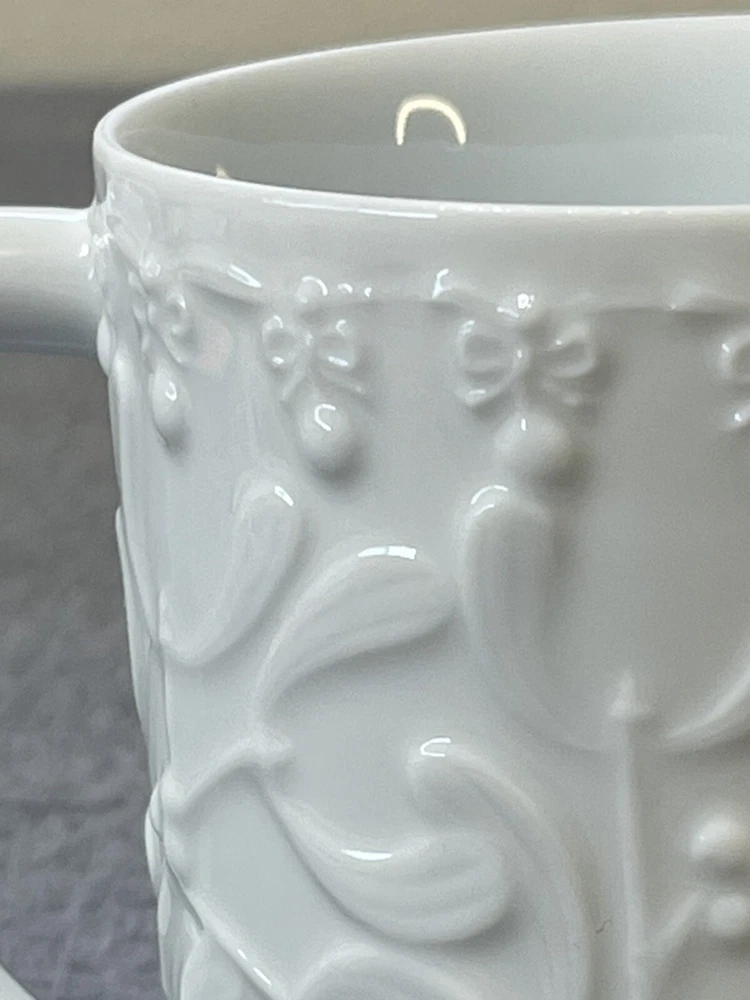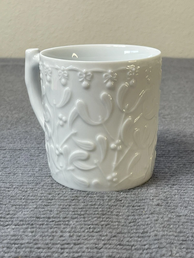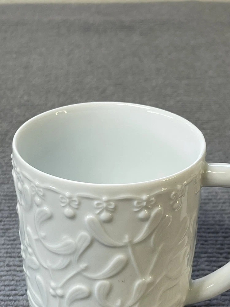 Bernardaud Mug - White Winter Fine Porcelain Discontinued piece Pre-owned - good condition. No chips, cracks or visible damage Height is 3 5/8