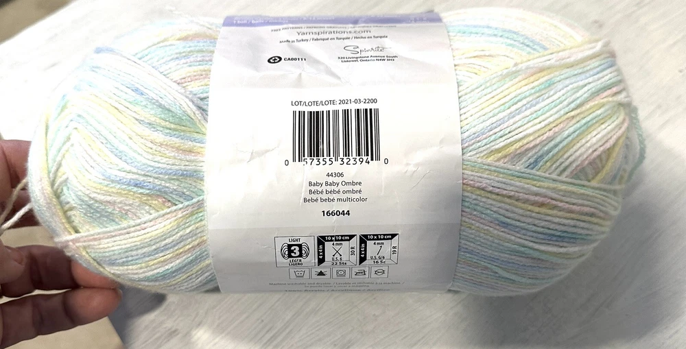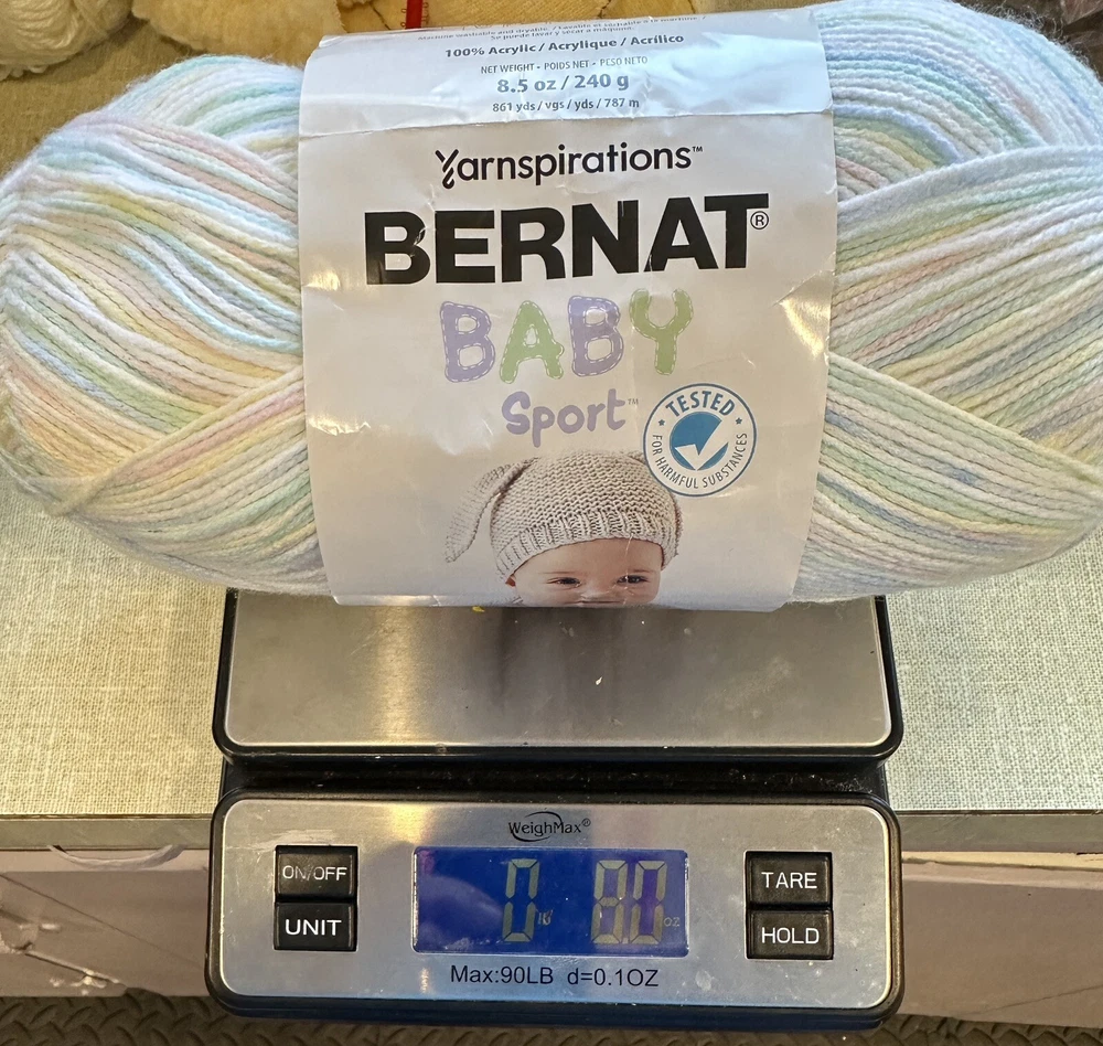 Bernat Baby Sport Yarn 8/8.5 Oz “Baby Ombre" Multi-pastels -missing .5 oz.- but almost full approx. 810 yards Beautiful, soft, baby pastels