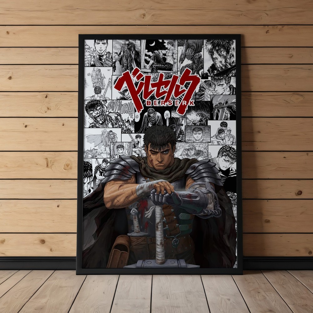 (IMPORTANT: Poster frame is not included) Poster of Iconic Panels from Berserk. Image is printed on matte canvas paper and can come in sizes 8x12 up to 24x36 with or without a white border. Immerse yourself in the epic world of Berserk with this stunning Guts Anime Art Wall Print. Designed for fans and art enthusiasts alike, this poster captures the intense and gritty essence of the beloved manga series, bringing your favorite character to life in vivid detail. Key Features: Canvas Material: Crafted on premium canvas, this poster offers a textured and durable finish. The canvas material enhances the depth and richness of the artwork, ensuring it remains a vibrant centerpiece in your collection. Poster: A perfect addition to any wall, this poster combines artistic flair with iconic imagery from the Berserk series. Display it in your living room, bedroom, or workspace to showcase your passion for anime art. High Quality: Printed with precision and attention to detail, this Berserk poster boasts high-quality resolution and color accuracy. Experience the intricate lines and bold colors that pay homage to the manga's powerful storytelling. Transform your space with the Berserk Poster - Guts Anime Art Wall Print, and let the legendary tale of Guts inspire and captivate. Whether you're a long-time fan or a newcomer to the series, this wall print is an essential piece for any manga enthusiast's collection. Embrace the dark fantasy and bring a touch of anime culture to your home today.