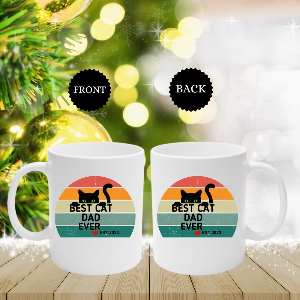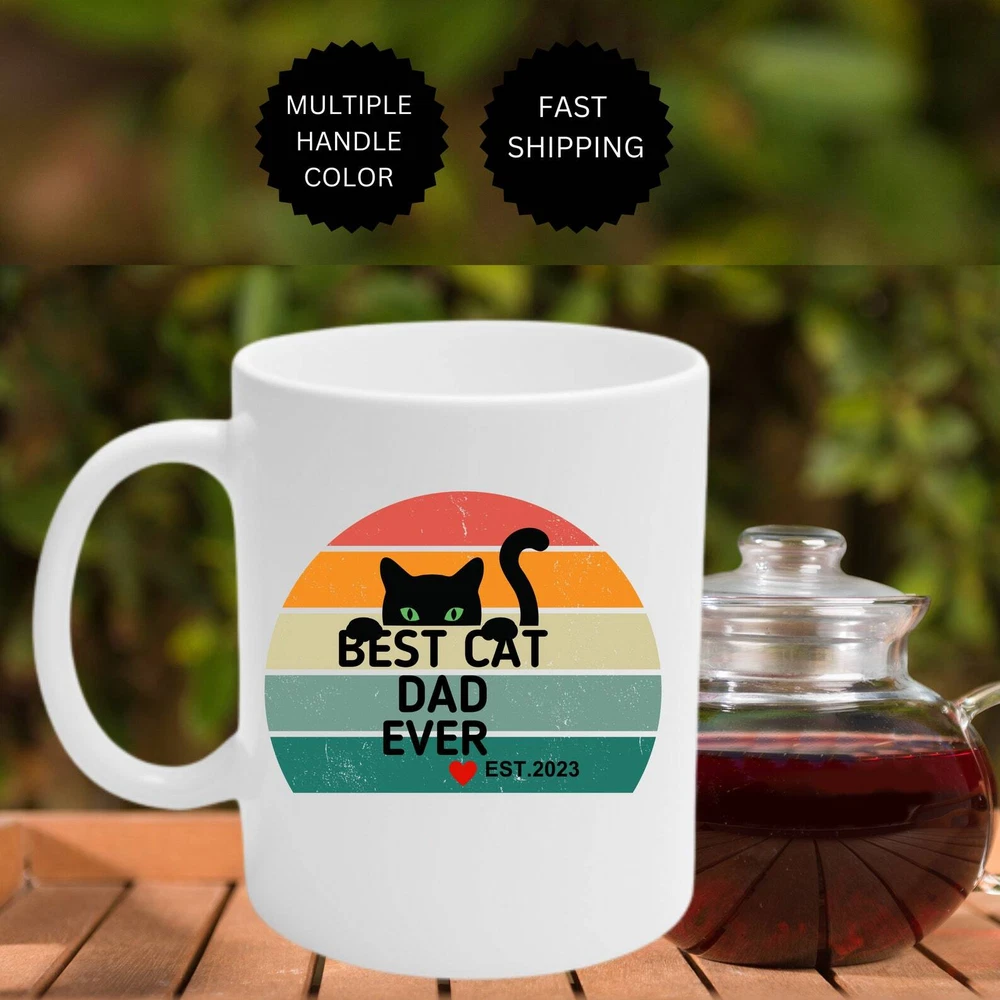 Best Cat Dad Ever Best Cat Dad Ever New Dad Gift New Dad Mug Dad Est Mug New Daddy Mug Dad To Be Gift Fathers Day Gift Product Details.. This high quality 11oz. ceramic white mug has a premium hard coat that provides crisp and vibrant color reproduction sure to last for years. Perfect for all hot & cold beverages. The highest quality printing possible is used. It will never fade no matter how many times you wash it. Material: 100% Ceramic. Print both sides. Dishwasher and Microwave Safe. High Gloss + Premium White Finish. Printed in the U.S.A. Personalized & Custom. We support personalized and custom mug to add custom, when placing an order, you can add notes to the "order note" in shipping address section. Also you can contact us directly via message. Shipping Info. Ready to ship in 1 to 2 business days, All products are made-to-order and proudly printed in the United States. Shipped by USPS and DHL, You will receive your order in 5-7 days. Replace & Refund. All products are defective during shipping broken, chipped will be replaced free of charge. You are not satisfied with the product, we will refund 100% money to you. If any other issues arise, please do not hesitate to message, we would be more than happy to assist you.