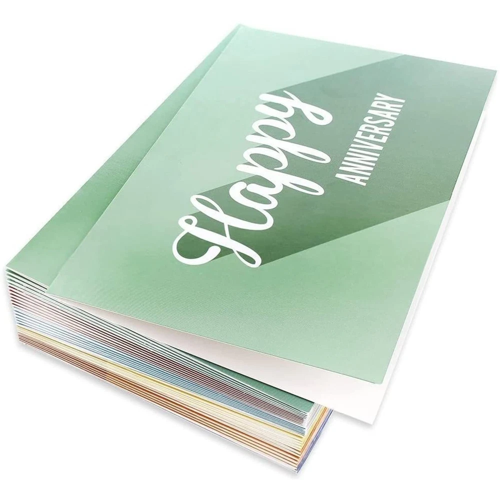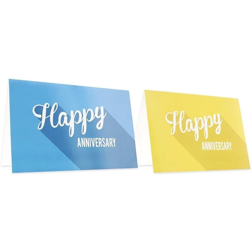 These 36 assorted employee happy anniversary cards bulk pack is the perfect way to celebrate your employees' milestones and show appreciation for their hard work and dedication. The cards feature a modern, flat design with colored backgrounds that read "Happy Anniversary," making them ideal for small businesses looking to commemorate special occasions. With a blank interior, these cards provide ample space to write personal messages to employees, coworkers, and business partners, allowing you to convey your gratitude and congratulations meaningfully. The versatility of these cards also makes them suitable for other occasions, such as weddings, birthdays, and other anniversaries. Each card in the pack is crafted from high-quality 250gsm cardstock, ensuring durability and a premium feel. Measuring 4 x 6 inches, they are the perfect size for displaying on a desk or mantelpiece. The work anniversary cards for employees come with corresponding 120gsm v-flap envelopes, making them easy to mail to your employees. By purchasing this bulk pack, you can ensure that you always have a card on hand to celebrate your employees' achievements, making their special moments even more memorable. Our beautiful work anniversary cards are a fantastic way to show your appreciation and gratitude, reinforcing the bond between you and your team. So, celebrate your employees' milestones with these stunning cards, and tell them how much you value their contributions to your organization. Happy Designs: These 36 pack anniversary cards feature 6 minimalist designs with the phrase "Happy Anniversary" printed in retro typography. They are perfect for congratulating employees on their work anniversaries, as business anniversary cards, post wedding celebrations or to stockpile your blank happy anniversary cards collection Anniversary Cards for All Couples: These pack of 36 retro-inspired cards features a universal design that is suitable for all couples, whether they are celebrating a work anniversary or a wedding anniversary, capturing their love and milestones Retro Design: These blank happy anniversary cards feature 6 minimalist designs with "Happy Anniversary" printed on each card in retro typography, including soothing colors like yellow, red, green, navy blue, light blue and orange Versatile: This bulk anniversary cards set includes 6 unique designs (6 of each design are included for a total of 36 cards - with envelopes) and are blank inside, allowing you to personalize them with a message of your choosing. Whether used as home anniversary cards for realtors, business purposes, or personal use, you can add your own heartfelt messages to make each card special High-Quality and Convenient: These blank anniversary cards with envelopes in bulk are designed with superior quality in mind. They are printed on high-quality 250 gsm paper card stock, ensuring elegance and longevity. Each card measures 4 x 6 inches and comes with a corresponding blank V-flap white envelope. With both cards and envelopes in this bulk set, you'll always have what's needed on hand to help celebrate any anniversary with a retro twist