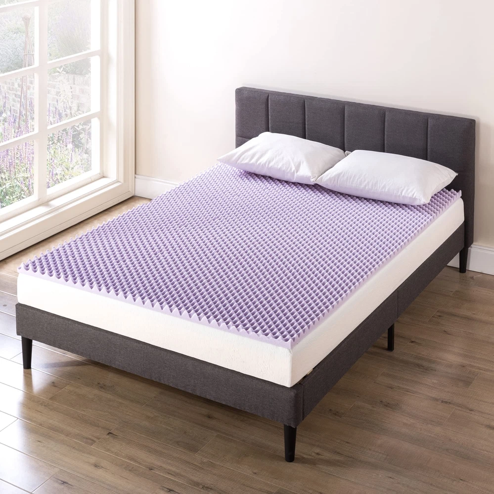 Best Price Mattress 1.5-inch egg crate memory foam mattress topper will ease you into a soothing night with a lavender infusion. It's the body conforming memory foam you love infused with lavender to provide naturally soothing benefits and ultimate comfort. Memory foam is well known for its body contouring features and pressure relief comfort throughout your whole body. Once you lay down, our memory foam toppers will start reacting to the temperature of your body and begin to mold itself to your shape, evenly distributing your weight. The egg crate memory foam structure is designed for better airflow while providing a customized level of support. Combined with our pressure relief system, enjoy total relaxation with ultimate support in key areas including the head, shoulders and hips. 1.5-inch memory foam mattress topper with an egg crate design for increased airflow Soothing lavender infusion in the memory foam is ready to slip you into a relaxing dream Responsive memory foam relieves pressure points and isolates motion to provide undisturbed sleep for you and your partner Compactly rolled and delivered to you along with a 3-year manufacturer's warranty Made with CertiPUR-US certified memory foam to meet high standards for content, emissions and durability