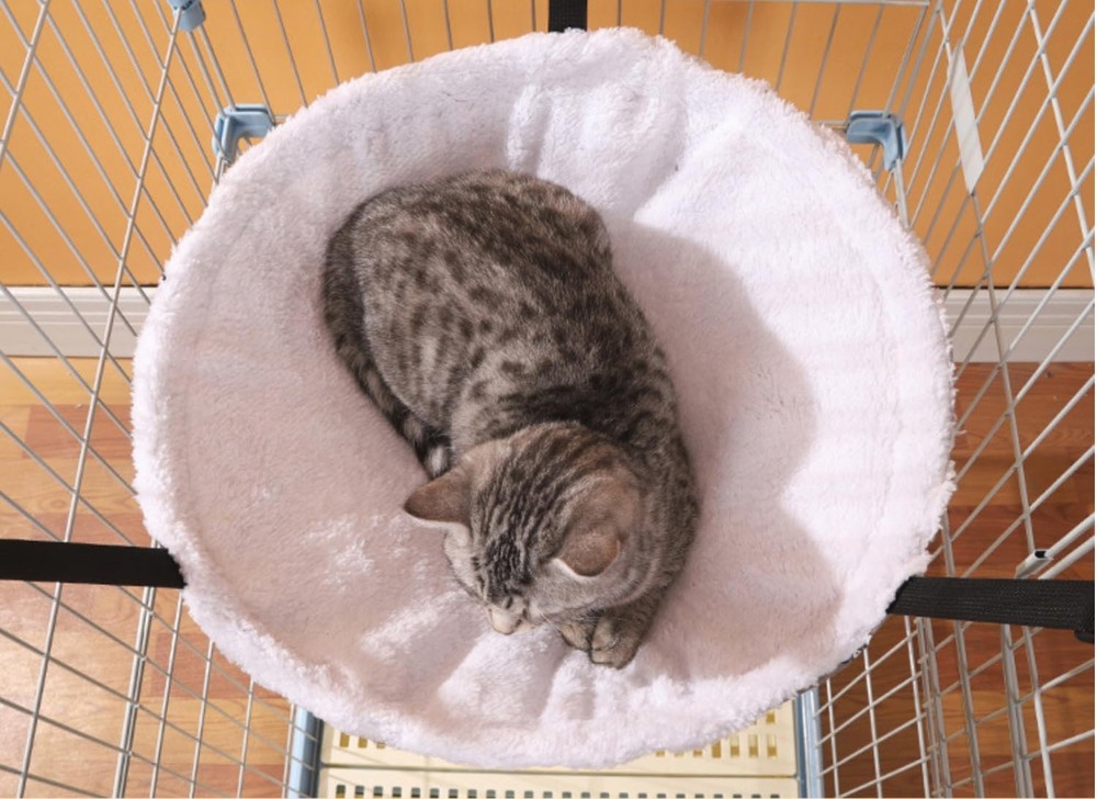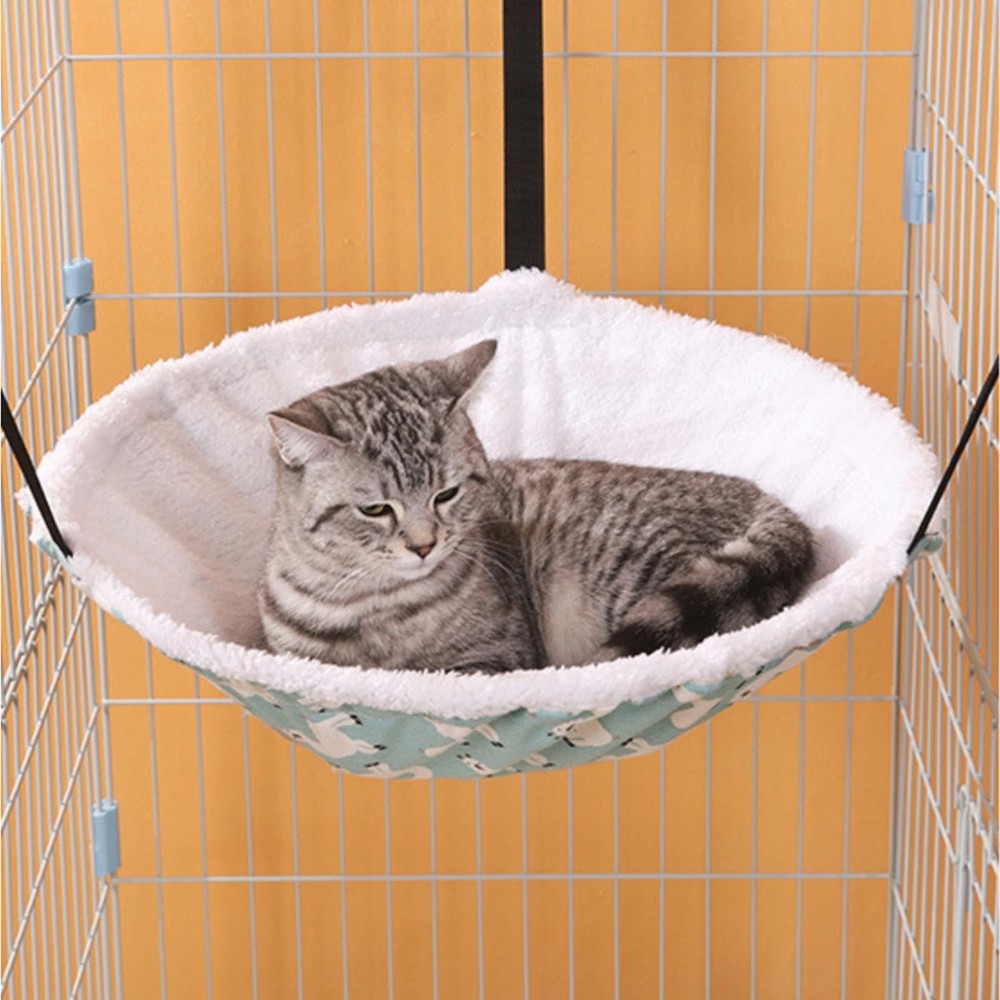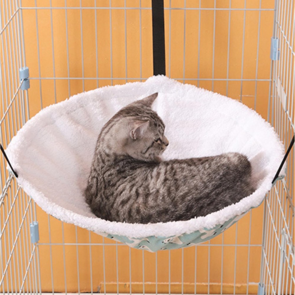 2-Pack Cat Hammock Cat Hanging Bed for Cage Kennel Chair 【2-PACK CAT HAMMOCK】Measures 14" Diameter x 5" Depth, perfect for cats up to 15LBS. 【ADJUSTABLE NYLON STRAPS】Mini carabiner clips for clipping with a maximum length of 10.2 inches, choice of lengths to suit your needs. 【MULTIPLE SCENARIO APPLICATION】Easy to hang at the top of cage, tree, tower, or under a chair with straps. 【COMFORTABLE & STABLE】The hammock with metal frame is sure to make your kitty feel more comfortable and stable while taking snap. 【HEALTHY MATERIAL AND STURDY】Features soft plush on one side and cotton canvas on the other, for maximum comfort, durable, heavy duty and water resistant.