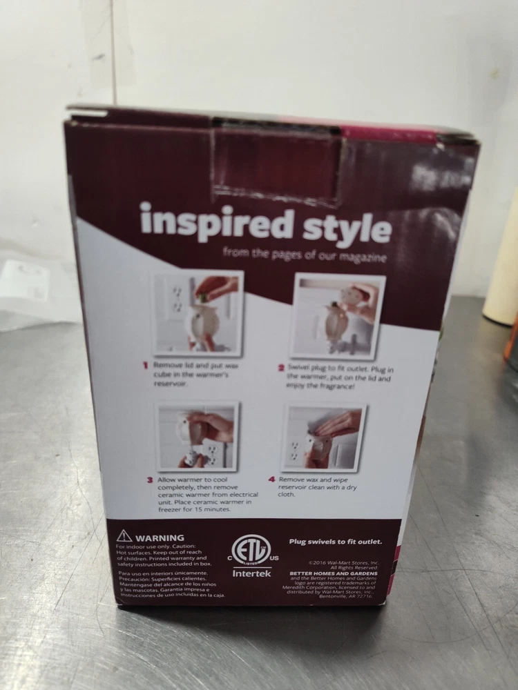 Add a touch of festive cheer to your home with this Better Homes and Gardens scented wax accent warmer. Perfect for the holiday season, this wax warmer features a delightful scent that will fill any room in your home with a warm and inviting aroma. Made from high-quality wax, this wax warmer is designed to last and will provide you with endless hours of enjoyment. Whether you're looking to add a touch of elegance to your home decor or simply want to create a warm and cozy atmosphere, this Better Homes and Gardens wax accent warmer is the perfect addition to your home. With its sleek design and high-quality construction, this wax warmer is sure to become a cherished part of your home decor.
