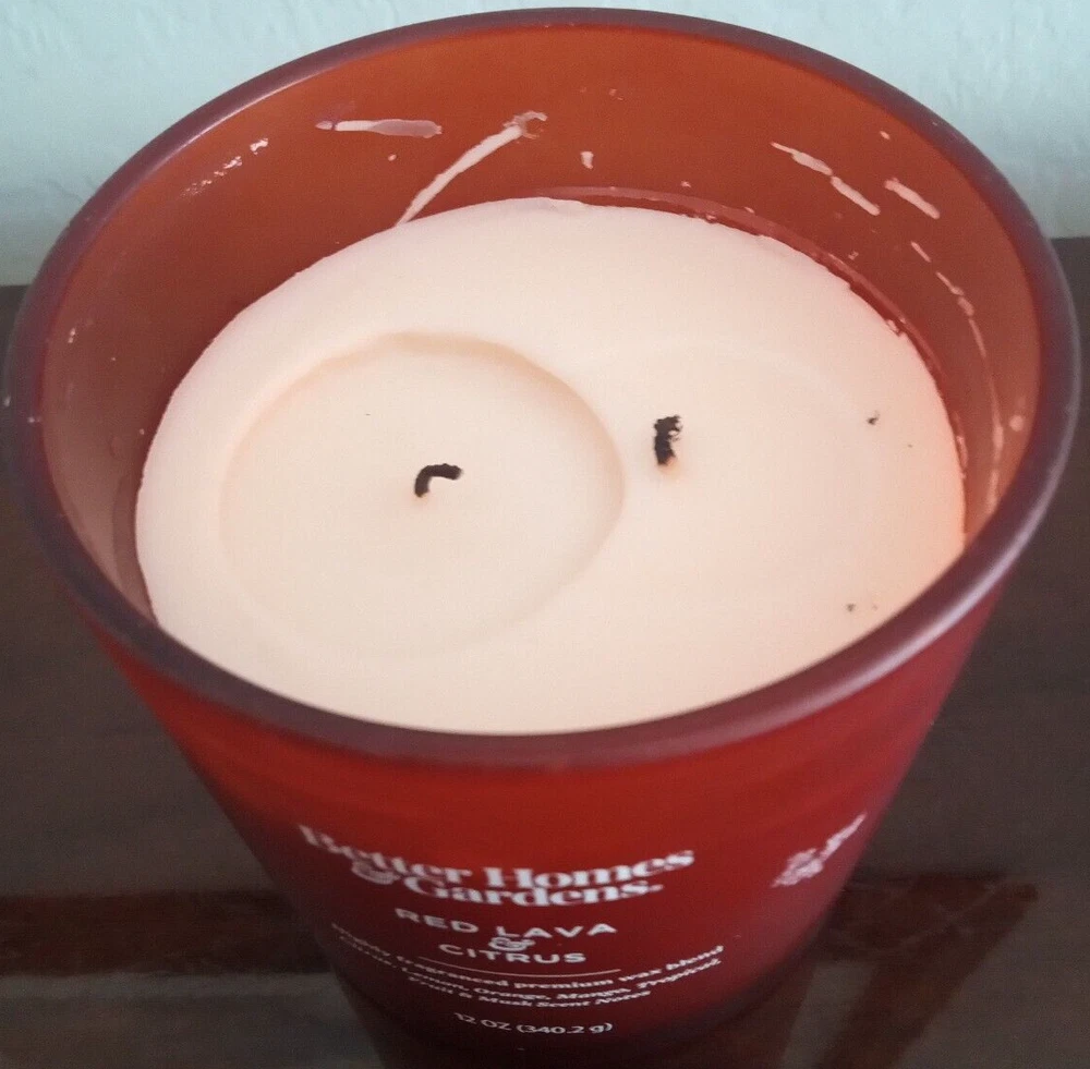 Enhance the ambiance of any room with this inviting Better Homes & Gardens 12 oz Red Lava & Citrus Scent 2-Wick Jar Candle Lid. The round-shaped, medium-sized candle jar is made of high-quality glass and features a vibrant red jar and cream-colored wax design. The candle is perfect for any room and occasion, emitting a refreshing citrus scent that creates a relaxing atmosphere. This traditional-style jar candle has two wicks with the jar measuring 4.25 inches in height and 3.5 inches in width. It is a perfect addition to your candle collection, providing a warm and inviting glow to your home.