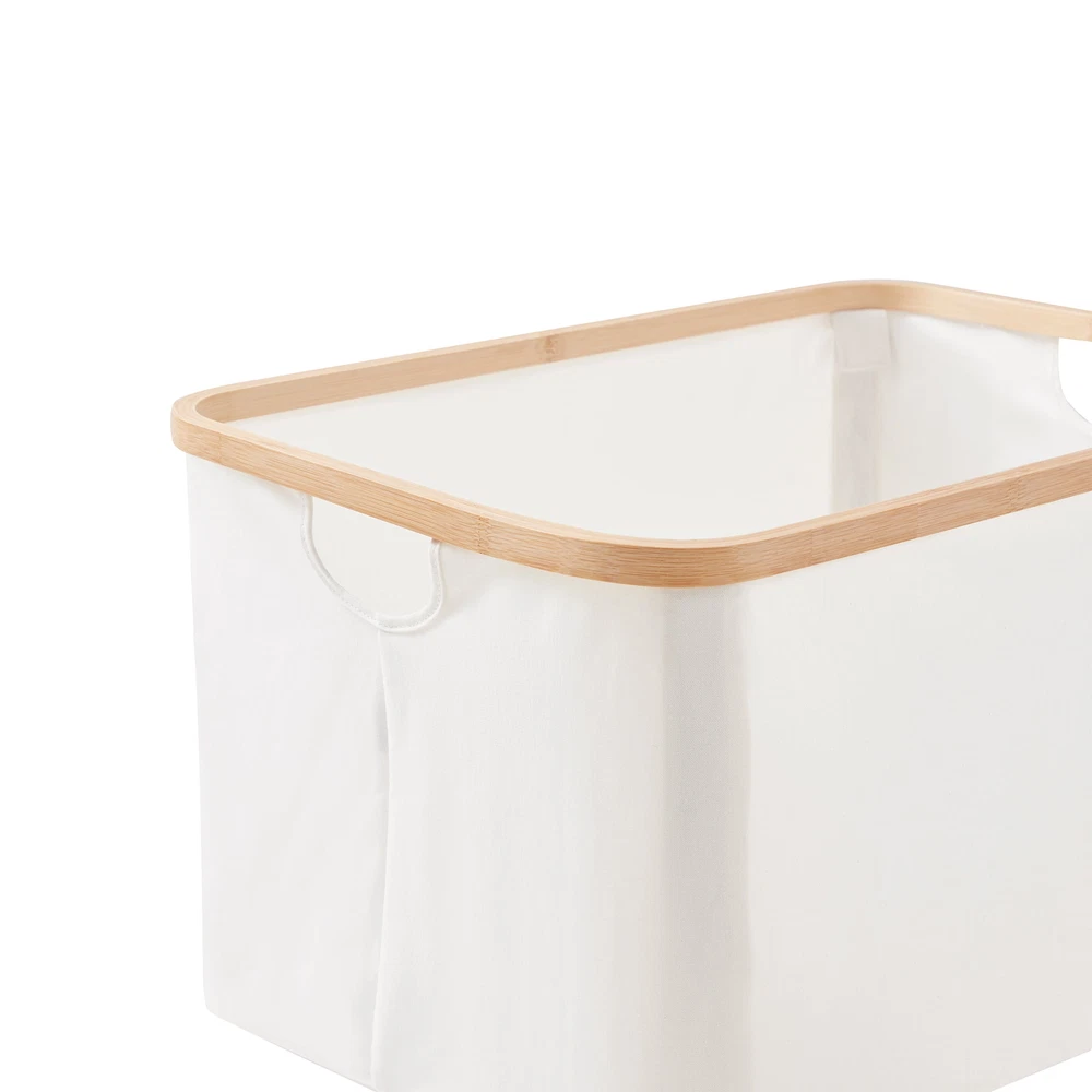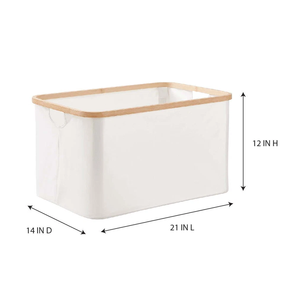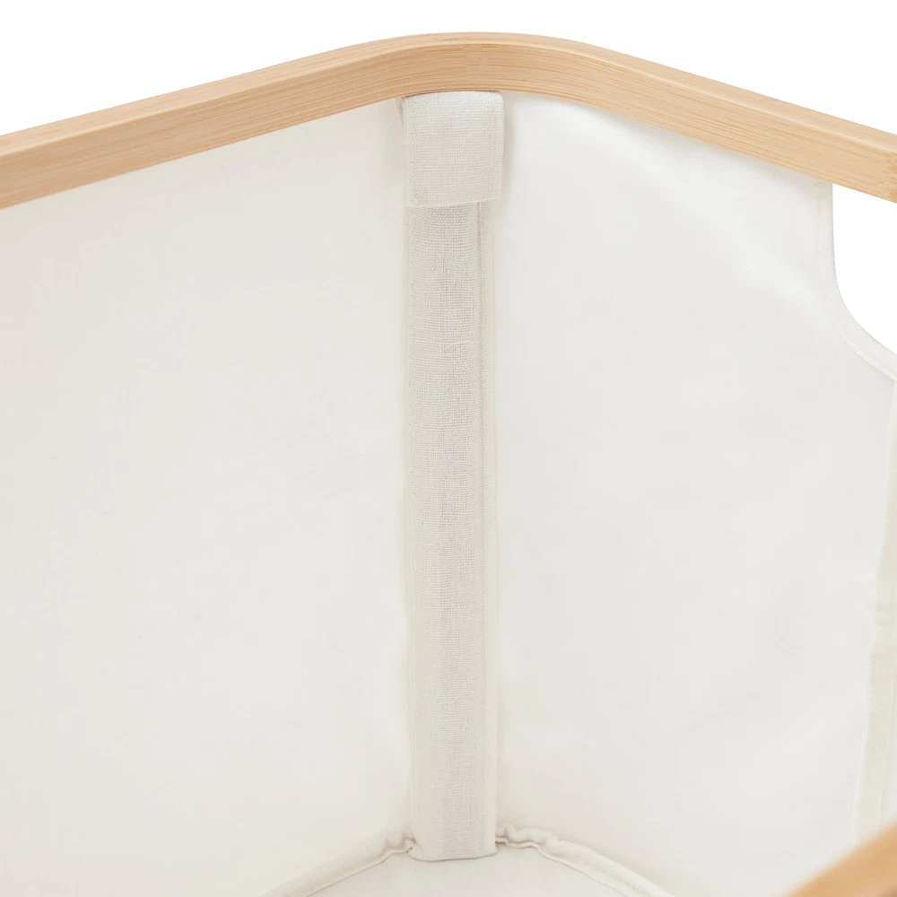 Freshen up your laundry routine with the Better Homes & Gardens Ivory Collapsible Canvas Laundry Basket. This fabric basket features an ivory canvas design with a bamboo rim, and convenient cut-out handles for carrying. The inner portion of the basket has a water-resistant coating that makes it easy to wipe clean. Perfect for space spaces, this rectangular hamper is 21 inches long, 14 inches wide, and 12 inches tall and collapses flat for easy, space-saving storage when it is not in use. This versatile storage basket can be used in the laundry room to hold clothes, in the bathroom to store towels and bath items, or throughout your home to organize small items. Better Homes & Gardens Collapsible Ivory Laundry Basket Collapsible laundry basket for easy storage Ivory canvas design complemented by a bamboo rim Convenient cutout handles for effortless carrying Constructed from durable polyester/cotton fabric with bamboo rim and Velcro side inserts Waterresistant inner coating for easy cleaning
