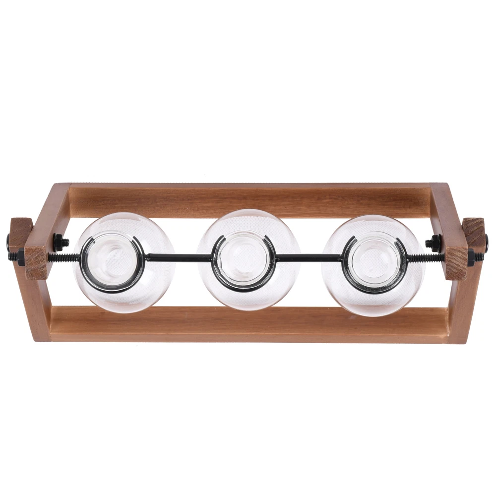 Better Homes & Gardens 3 pack Propagation Station design wood rack in natural retro color combined with 3 bulb-shaped glass vases. Perfect for desk or coffee station table without taking up much space. Plant your beloved plants or cuttings, when you are tired at work, you can relax your eyes with green plants at any time. The frame is made of natural wood, which is strong and durable. The bulb vase is made of high-quality borosilicate glass. Design to provide a better growth environment for your plants. A stylish way to display the artificial or fresh flowers, plant cuttings, mixed bouquets and water rooted plants. This lovely propagation stand is the best gift for plant lovers. Please plant your favorite plants in this product, please do not directly expose the glass ball filled with water to the sun. Made of clear glass and sturdy wood frame Size: 11.3 in L x 4.3 in W x 5.5 in H No assemble needed 1 wood stand and 3 glass vases included Note: Glass is fragile, please treat them carefully when using Please plant your favorite plants in this product, please do not directly expose the glass ball filled with water to the sun.