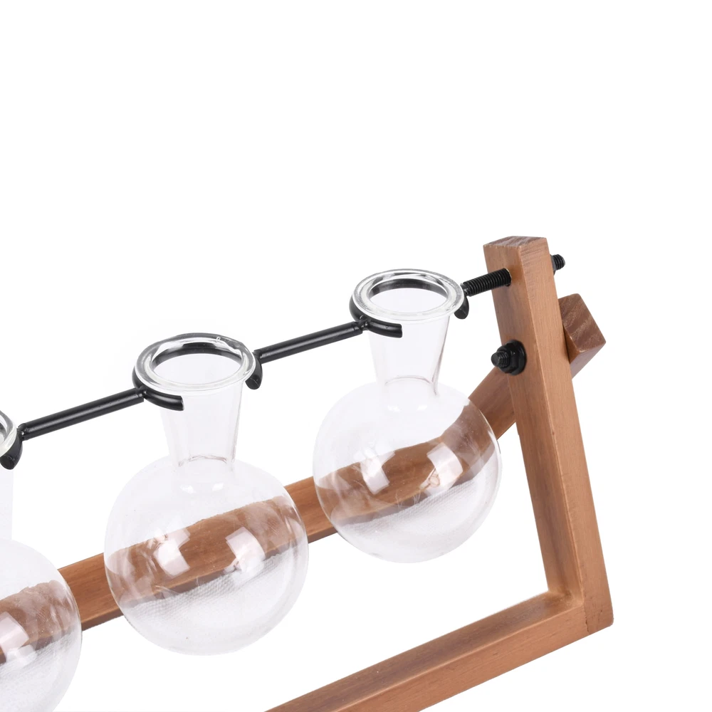 Better Homes & Gardens 3 pack Propagation Station design wood rack in natural retro color combined with 3 bulb-shaped glass vases. Perfect for desk or coffee station table without taking up much space. Plant your beloved plants or cuttings, when you are tired at work, you can relax your eyes with green plants at any time. The frame is made of natural wood, which is strong and durable. The bulb vase is made of high-quality borosilicate glass. Design to provide a better growth environment for your plants. A stylish way to display the artificial or fresh flowers, plant cuttings, mixed bouquets and water rooted plants. This lovely propagation stand is the best gift for plant lovers. Please plant your favorite plants in this product, please do not directly expose the glass ball filled with water to the sun. Made of clear glass and sturdy wood frame Size: 11.3 in L x 4.3 in W x 5.5 in H No assemble needed 1 wood stand and 3 glass vases included Note: Glass is fragile, please treat them carefully when using Please plant your favorite plants in this product, please do not directly expose the glass ball filled with water to the sun.