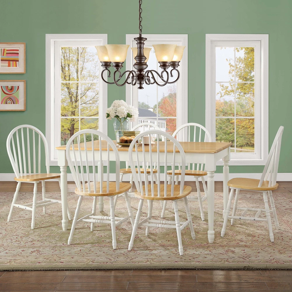Make your dining experience extra stylish with these amazing Better Homes and Gardens Autumn Lane Windsor Dining Chairs. The solid-wood dining chairs have an elegant, traditional look, which is inspired by farmhouse antiques. They are standard height so you can use these versatile chairs in the dining room, kitchen, breakfast nook or for extra seating throughout your space. The stylish turned-wood legs and back contribute to the sturdy construction, making these dining room chairs durable for many years to come. Our beautiful chairs complement most any interior decor and furniture style, from contemporary to traditional and all things in between. These chairs are easy to assemble so you can enjoy them right away. Ideal for any room, these standard height chairs have an elegant, traditional look Can be used in the dining room, breakfast nook or kitchen Stylish turned-wood legs and back contribute to the sturdy construction Attractive furniture option fits well with any decor, from contemporary to traditional Easy Assembly Dining chair dimensions: 18"W x 20.25"D x 36.5"H (46cm x 52cm x 93cm) Product Weight: 24.69 lb (11.2 kg) Packaging Dimensions: 23.25" x 18" x 19" Packaging Weight: 30.86 lb (14 kg) On Feb 18, 2025 at 19:49:43 PST, seller added the following information: