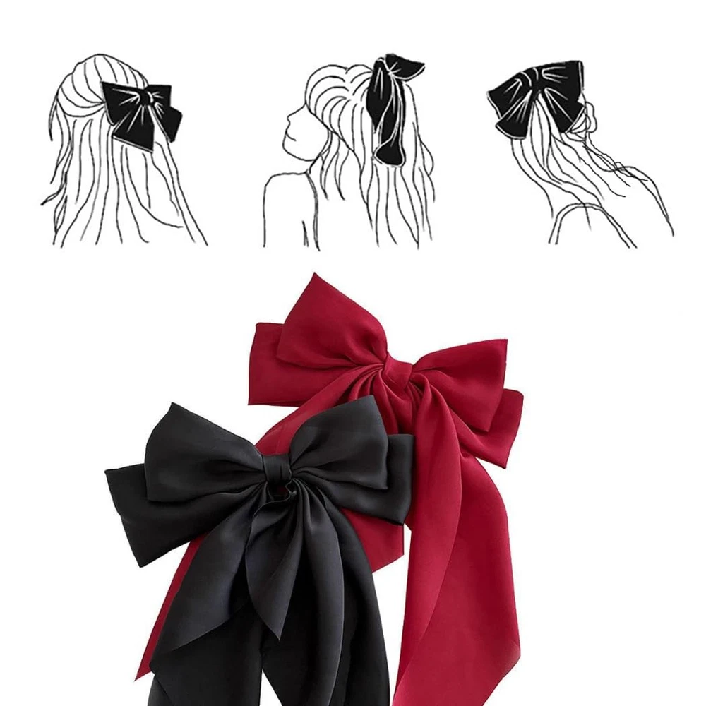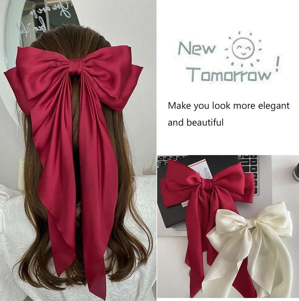 ★Size: Hair Clip length approx. 37 cm, width approx. 20 cm. 6 colors Red, black, beige, pink, navy blue, dark green. Suitable for curly hair, straight hair or ponytail of various colors. ★Material: Big ribbon made of elegant satin fabric, full of luxury, hair clip is made of high quality alloy, it does not damage the scalp, it can be worn comfortably. ★Features: The classic bow element design is very delicate and elegant. Pinning oversized bows in your hair will make you look more elegant and glamorous. Suitable for various occasions and daily use. ★Easy to Use: The satin hair bow is equipped with a metal hair clip, you can create a beautiful hairstyle by simply clamping part of the hair, making you look more charming. ★Suitable Multi Occasions:The large bow hairpin fully satisfies your needs in wedding, proms, evening, party, daily life, work,school,holiday, etc.This is the best gift for yourself, family, and friends for birthdays, Christmas. Specification: Name: Big Bow Barrettes Material: Satin fabric & metal hair barrettes Color: Red, Black, Beige, Pink, Navy Blue, Dark Green Size: Approximately 37cm * 20cm Quantity: 6pcs Package Included: 6 X Hair Bow Clips Feature: 1.Simple but very strong, beautiful and cute, so elegant and fashionable. 2.Bowknot Barrettes are very popular with girls, young lady, and women, good choice for any gift giving occasion. 3.100% Satisfaction Guarantee: If you have any questions about the purchase or products, please contact us immediately and we will help you at any time. Notes: 1.Please allow a little difference in size due to the manual measurement. 2.Please understand that the color of the item may be slightly different from the picture, due to different computer screen display.