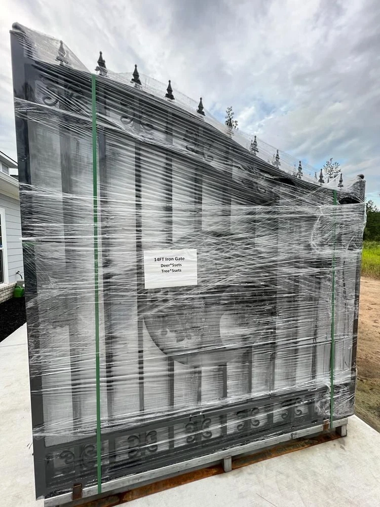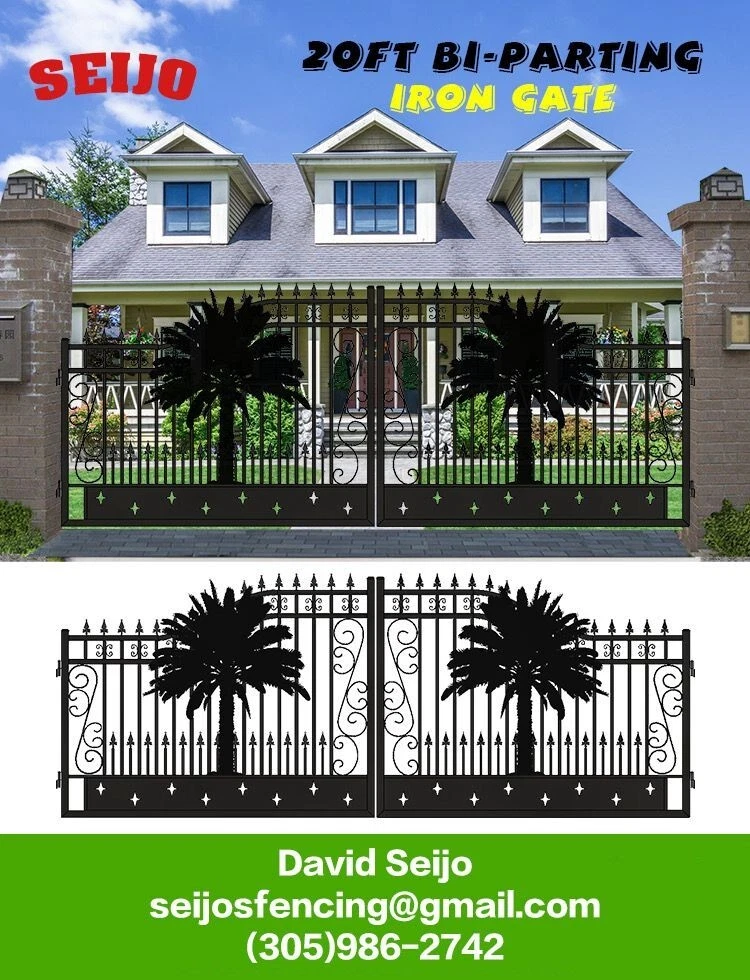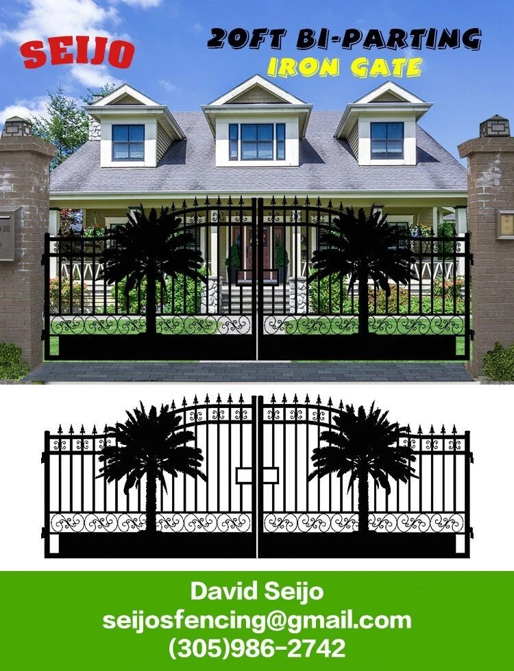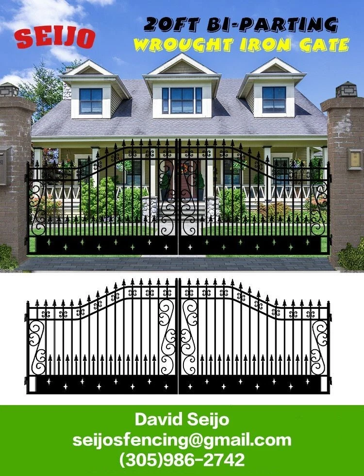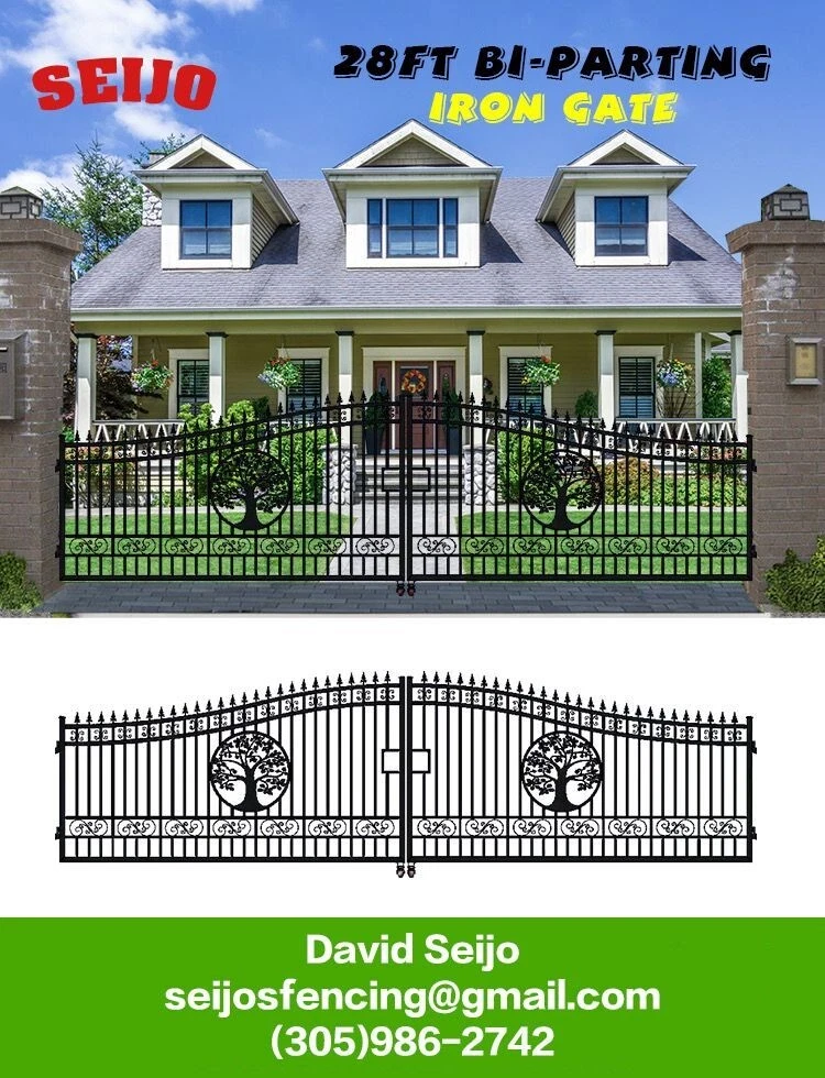 ⚒️⚒️⚒️⚒️ PRICE IS FIRM ⚒️⚒️⚒️⚒️ My price is way better! 💵💵💵💵💵 CASH ONLY 💵💵💵💵💵 Prices are: $1500 20' $1400 16' $1350 14' $1300 12' 🏚️ Posts are also available the set $250 🏚️ Im located passing the line of Florida/Georgia in Brunswick GA and about 40min from Jacksonville FL and an hour from Savannah GA 🚧 This Bi Dual Swing Wrought Iron Steel with double coated Gate for Driveway is affordable and high quality, and it is a good choice for homeowners, landscapers, masons, garden, and swimming pool builders. 🚧 ⛩️ A wrought iron gate is a good investment to add curb appeal and value to your private property. Adding more romantic and luxury to your favorite place, your home is more shining and artistic. ⛩️ 🏚️ Seijo's Fencing wrought iron gate has a long, durable life, and it separates your private space from outsides, and it provides a practical barrier for your home. 🏚️ 🗽 Models: are all bi-duals: 🗽 12ft two gates of 6ft 14ft two gates of 7ft 16ft two gates of 8ft 20ft two gates of 10ft Bi-Parting Wrought Iron Gate. With artwork "DEER" "OAK TREES" "HORSES" Contemporary style. Three different to chose from. Specification: Length Height Width 14' 14ft 💡 7.6 ft 0.21ft 16' 16ft 💡 7.6 ft 0.21ft 18' 18ft 💡 7.6 ft 0.21ft 20' 20ft 💡 7.6 ft 0.21ft Inner Frame: 25*25*1.2mm steel frame Outer Frame: 50*50*2mm steel tube Frame Material: metal Metal Type: Wrought Iron Pressure Treated Wood Type: Heat Treated Frame Finishing: Powder Coated Feature: Easily Assembled, Rodent Proof, Rot Proof, Waterproof, Easy, Durable Type: Fencing, Trellis & Gates Capacity: Could bear more than 80KG Color: black Feature: Strong structure with an aesthetic European classic art design Have excellent climate resistance ability, durable in hot, humid, dry climates Erosion resistance and temperature change resistance, long-lasting in every condition Tough paint coating, powerful adhesive ability. The ornamental wrought iron component is an alternative, and you can choose from our selections. They can be collocated optionally to ensure variousness of our products and the construction is flexible and convenient. ▶️ Main Gate frame: 2inch x 2inch ▶️ Horizontal pipe:1-5/8inch x 1inch ▶️ Vertical picket: 3/4inch x 3/4inch ▶️ Gate post: 4inch x 5inch x 2.5meter high ▶️ Surface treatment: galvanized and powder coated Color:black Gate size: 1.8meter high x 4meter wide, 1.8mter high x 5meter wide, 1.8meter x 6meter ⏸️⭐️ Highest point 7ft lowest point 6ft ⭐️⏸️ (1.8meter high in lowest point, 2meter high in highest point) Or 12ft wide, 14ft wide, 16ft wide, 20ft wide. David (305)986-2742 https://seijosfencing.com