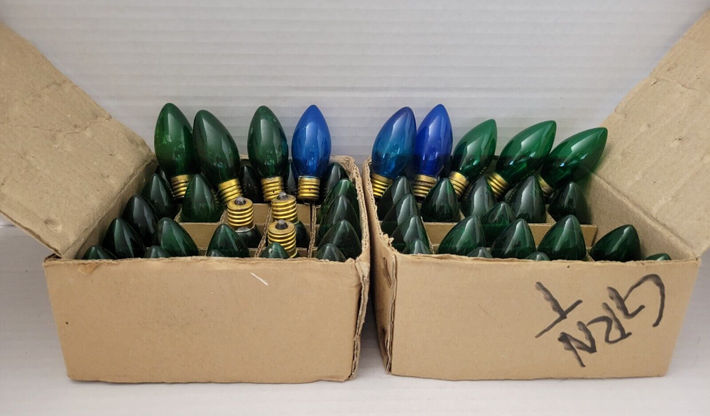 Bi-Mart 74 Bulbs Outdoor Light Bulbs C9 Christmas Transparent GREEN & BLUE 2 Boxes of 25 Bulbs each - Green 1 Box of 24 Bulbs - Blue Each item is carefully packaged to prevent any damage and is shipped immediately with tracking.