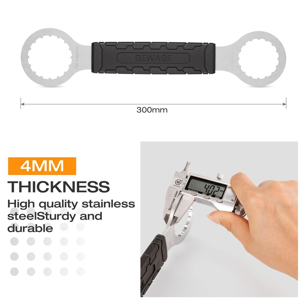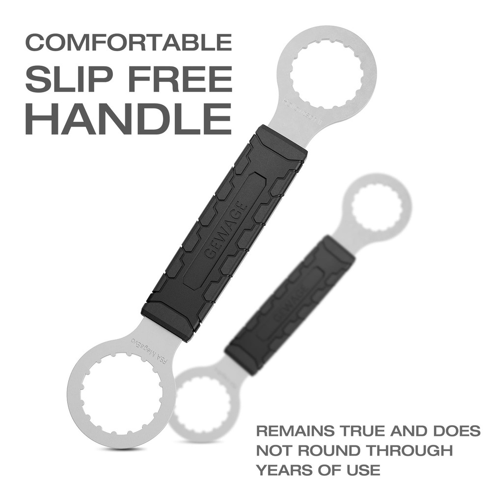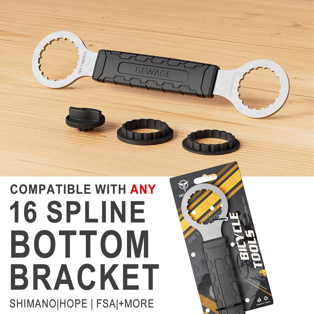 bike BB tool 【PROFESSIONAL BOTTOM BRACKET REMOVER TOOL】 - Kit your toolbox out with our professional Bike Bottom Bracket bearing extractor providing improved precision as well as reduced slipping to ensure stress free maintenance to remove and fit your Bikes Bottom Bracket. 【Bottom Bracket Tool Compatibility】- The bottom bracket tool is a double-ended bottom bracket wrench for the installation and removal of 4 different 16-notch tool fittings found on select bottom brackets, including Shimano Hollowtech II external BB, BB9000, BBR60 and FSA MegaEvo. Long plated-steel handle offers good leverage for high-torque applications. 【COMFORTABLE AND SLIP FREE HANDLE】 - Bottom bracket wrench tool with rubber coated handles ensure your hands don't slip during use and provide a sure grip when removing the toughest Splined Bottom Brackets. The handle is long enough to provide strong leverage for even less effort. 【BUILT TO LAST】 - High quality and durable heat-treated steel with chrome plating ensures remains true and does not round through years of use. Product dimensions - overall length 30cm / 11.8 inches 【QUALITY SERVICE】- Come with a Crank cap wrench For install and remove the crank arm dust cap compatible with Shimano 8 Teeth Internal Splines Hollowtech II,and if you have any problems or questions after you receive it, you can contact us at any time, we are happy to help you and give you a satisfactory solution. Let you shop with confidence.