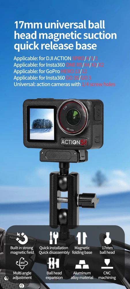 Bike Bicycle Clamp with 17mm Ball Head Adapter Magnetic Quick Mount for Insta360 Go3 Go3S for DJI Action 5Pro Camera Accessories Welcome to My Store