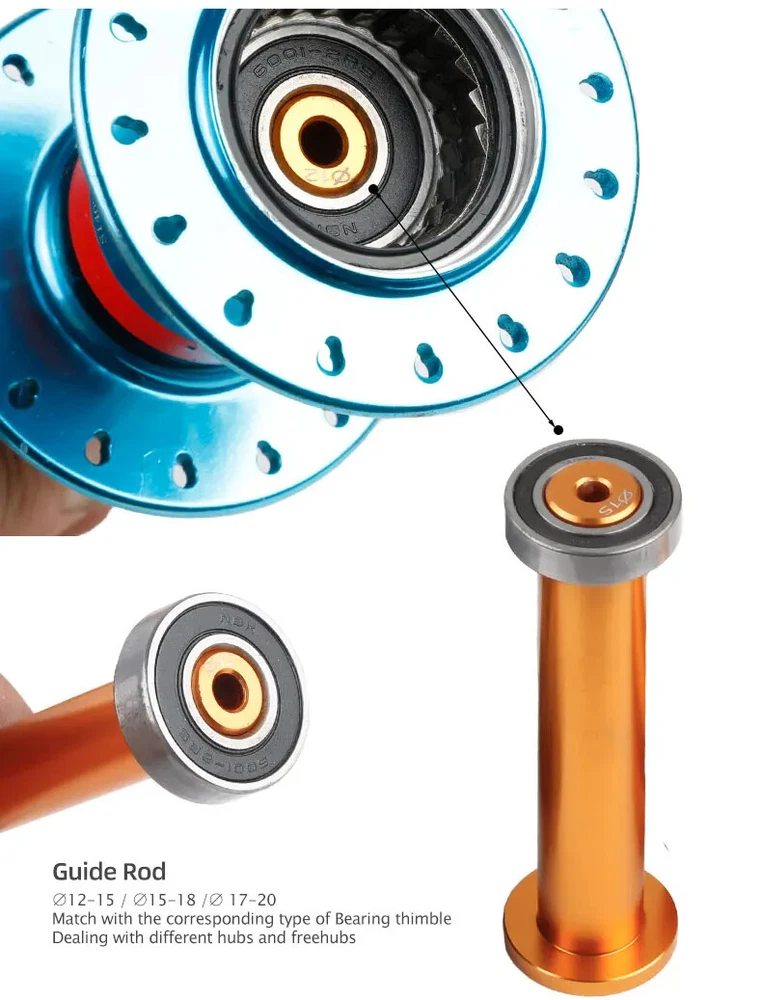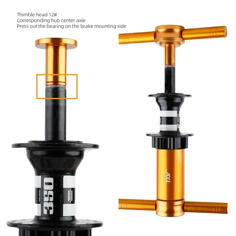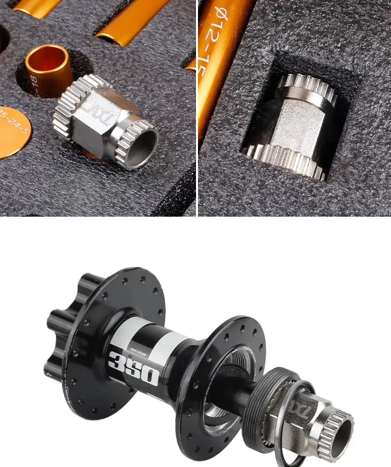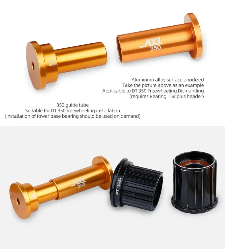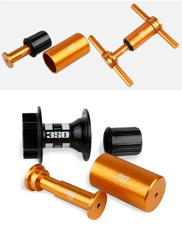 Bicycle Extractor Bearings Installation Removal Tool Kit Wheels/Hub Bearings Bicycle Accessories Bike Star Ratchet Removal Tools Material: aluminum alloy + steel Process: CNC machining. Anodizing Color: orange gold For: DT 350/Shimano/NOVATEC Hub , etc.(for 95% of the Hubs on the market)