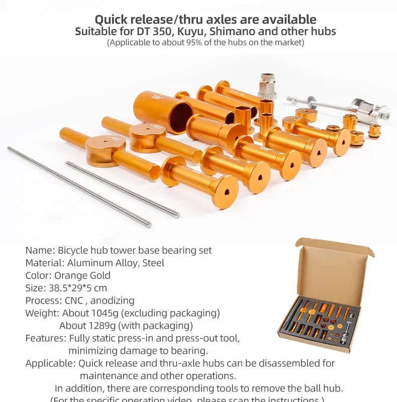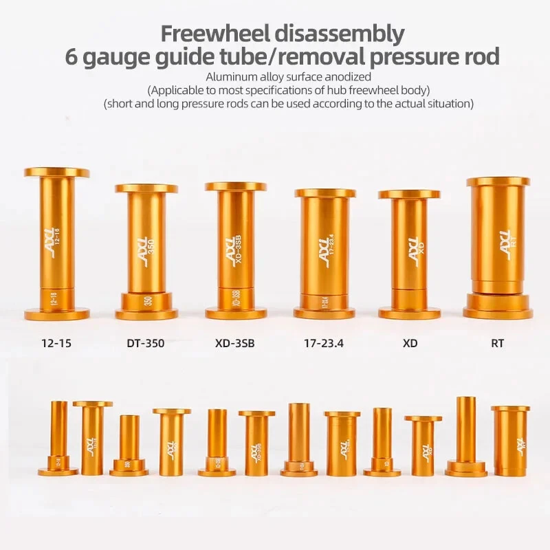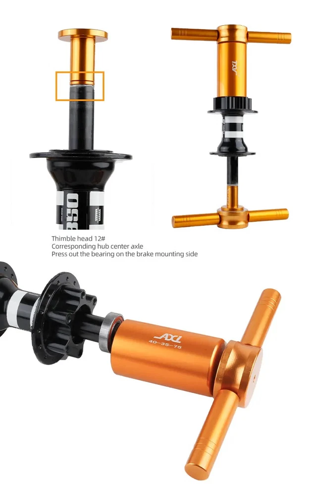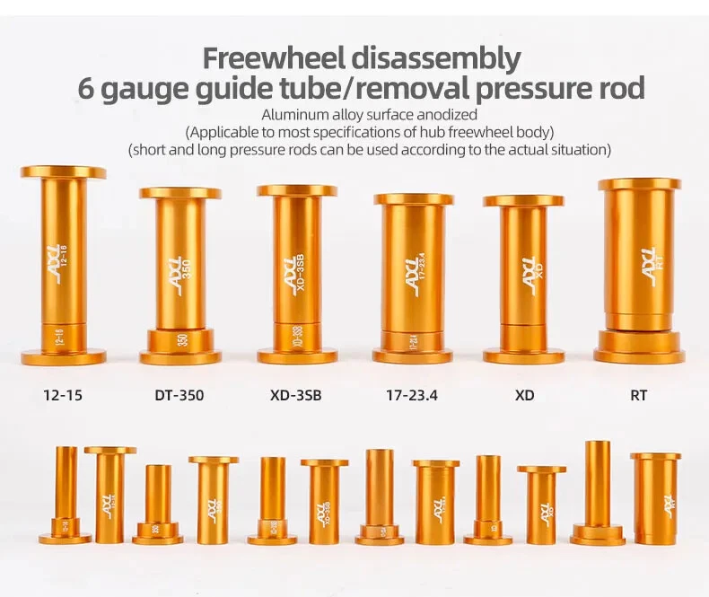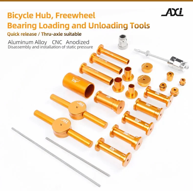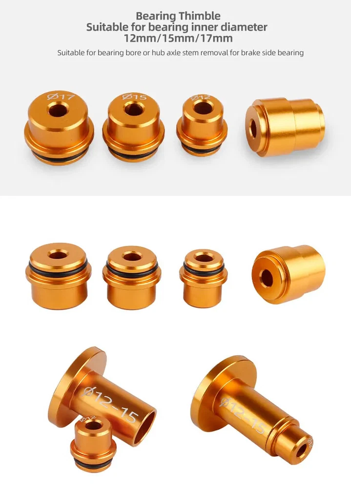 Bicycle Extractor Bearings Installation Removal Tool Kit Wheels/Hub Bearings Bicycle Accessories Bike Star Ratchet Removal Tools Material: aluminum alloy + steel Process: CNC machining. Anodizing Color: orange gold For: DT 350/Shimano/NOVATEC Hub , etc.(for 95% of the Hubs on the market)