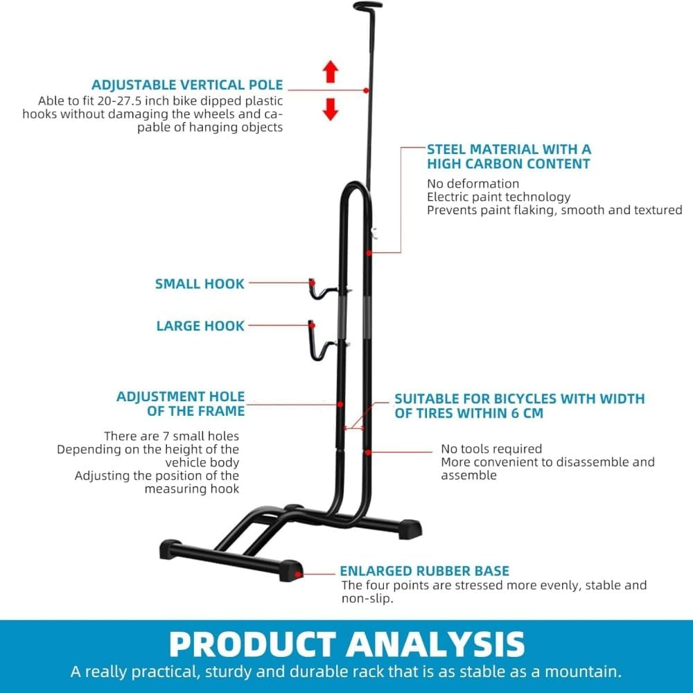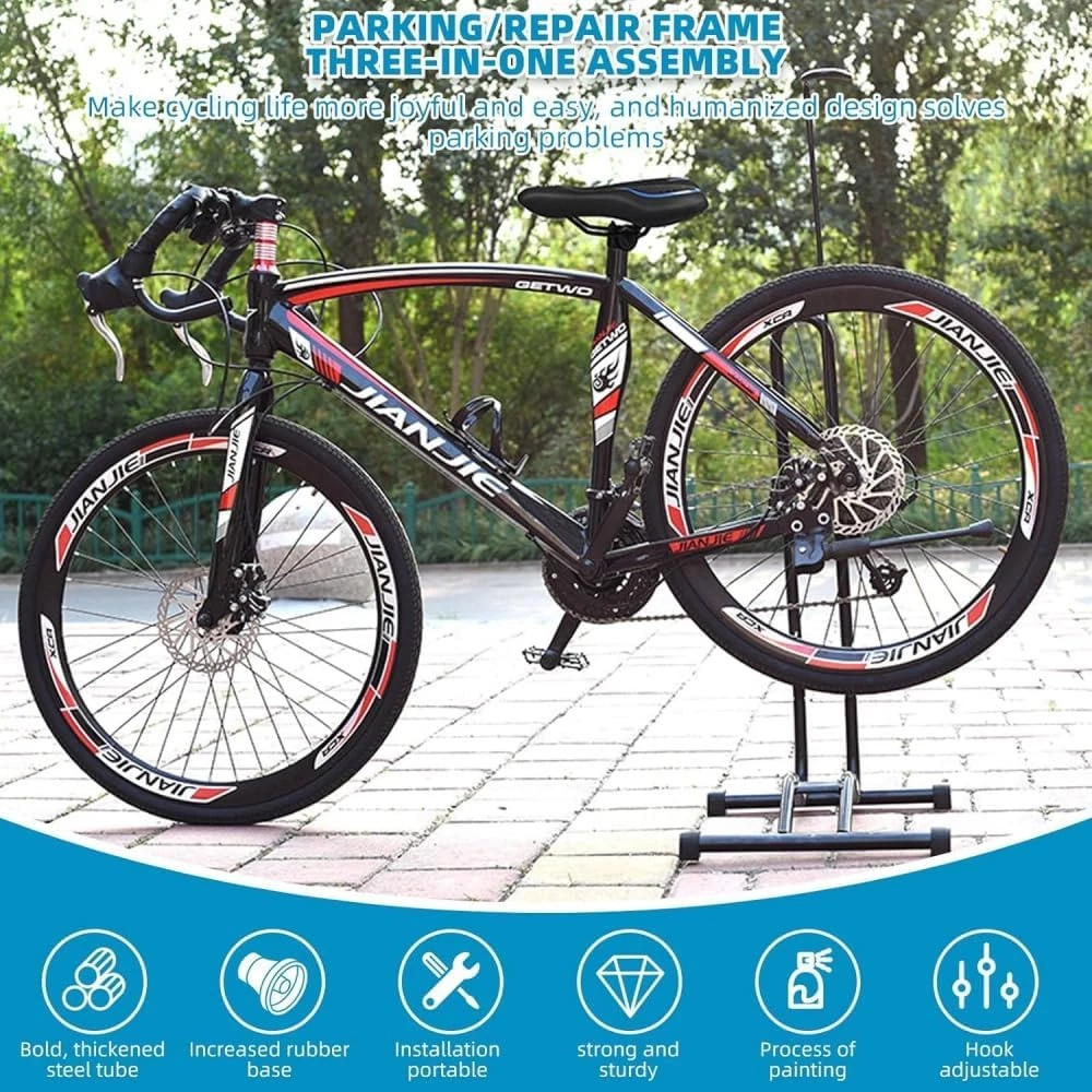 Bicycle Floor Stand 3 in 1 Display Stand Rack and Repair Stand for Mountain Road 3-in-1 bicycle stand: 3-in-1 bicycle stand for vertical parking, repair and car washing; with the wheel stand you can use all types of wheels from 16 to 29 inches. Includes mountain bikes, road bikes, children's bikes and much more. This makes the stand ideal for indoor and outdoor use SPACE-SAVING: Self-supporting vertical design maximizes floor space while securely holding your bicycle in an upright position STURDY CONSTRUCTION: Durable black metal frame with non-slip base provides stable support for your bicycle during storage or maintenance ADJUSTABLE FEATURES: Multiple support points with padded contact areas help protect your bike's frame while providing flexible positioning options Usable anywhere: can be used in any location such as garages, cellars, hallways, courtyards. Create space in the garage with style and speed in your hobby or cellar. Package contents: 1 bicycle stand, mounting material included Product Description Item model number TCJ-C029 Item dimensions L x W x H 23 x 3 x 7 inches Number of Levels 1 Assembly Required Yes Batteries required No Product Dimensions 23 x 3 x 7 inches Country of Origin United Kingdom Item Weight 5 Pounds Color Black Special Feature Parking Racks, Display Racks, Service Racks Complimentary Shipping and Easy Returns Need to return something? Enjoy our 30-day hassle-free return policy! Take advantage of free shipping across all 48 contiguous states! Your order will be dispatched within 1-2 business days once payment is confirmed. Your Opinion Matters! Your happiness is our main goal! We welcome your feedback! If you encounter any problems, reach out to us right away, and we’ll be here to help. Explore the Extraordinary! Our collection showcases fascinating products that are sure to capture your attention. What surprises await you? Delve in and discover unique items that enrich your daily life. Don't miss the amazing things we have in store for you!