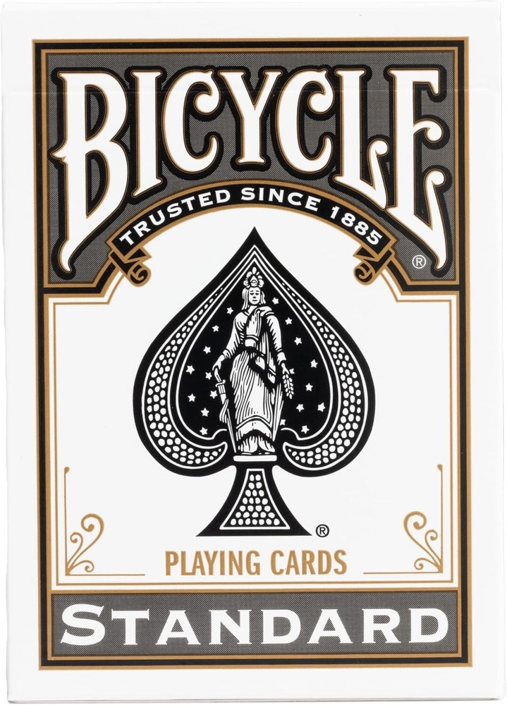STANDARD INDEX PLAYING CARDS: Enjoy the ideal balance of size and functionality with our Bicycle Black Playing Cards. Perfect as poker cards, these standard index cards cater to everyone from beginners to experts TRUSTED BICYCLE QUALITY: Experience the feel of perfection in every game with these high quality playing cards. Each card is engineered with an Air Cushion Finish, providing an easy handling and shuffling experience VERSATILE GAMING: These cards open the door to countless games of skill and chance. From poker and blackjack to euchre, pinochle, rummy, and canasta. Unleash your inner gamer with this versatile deck of playing cards CLASSIC RIDER BACK: With the classic Rider Back design, this deck of cards bring a sense of nostalgia and traditional charm to your gaming table. A perfect blend of style and functionality, adding a touch of class to your card games ECO-FRIENDLY & MADE IN USA: Crafted in the USA with 100% recyclable FSC paper, our Bicycle Cards embody an unparalleled blend of sustainability and quality. Feel good about your purchase knowing these playing cards contribute to a greener planet