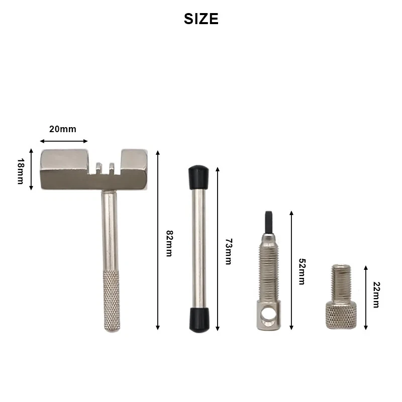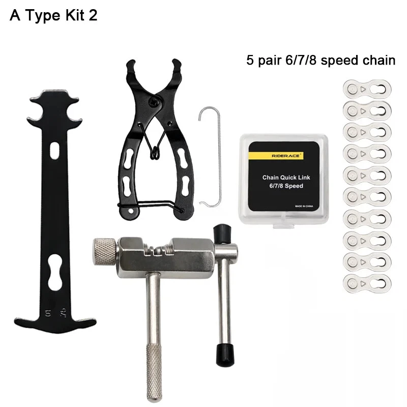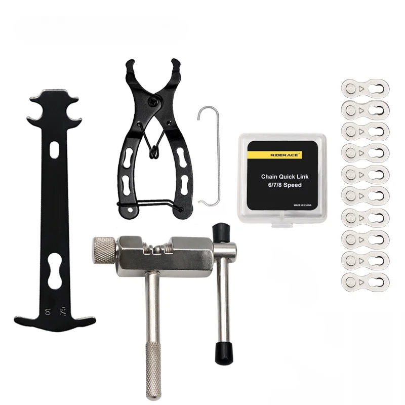 Features: Bike Chain Link Plier: Master link remover or connector tool allows you to effortlessly remove and replace chain link in seconds. No more fiddling around trying to squeeze the tight link together by hand.Simply insert the plier jaws into the master link and squeeze the handles, it’s that simple and easy. Bike Chain Breaker: The Bike Chain Breaker used to remove and install chain pins or other repair work,it can works for all common bicycle chains. Bicycle Chain Connector: Single-use connecting link.Reusable for mountain bike and road bike. Bicycle Chain Wear Checker: It can quickly detect chain abrasion,can decide if you need to change the chain. Specification: Name: Bicycle Repair Tool Kit Suit For: Mountain Bike/Road Bike Notes: 1.Due to the difference between different monitors,the picture may not reflect the actual color of the item. 2.Due to different personal measuring techniques,there might be 1-3cm error of the physical.Thank you!
