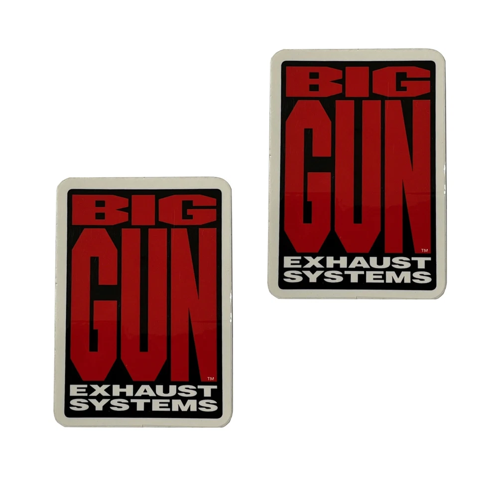 Big Gun Exhaust 3 3/8" x 2 3/8" Decals Listing is for two (2) stickers About Us ATV Galaxy is an authorized Big Gun dealer located in Irvine, California. Please feel free to contact us anytime with questions or tech help. We are open Monday-Thursday 8-5 PM, Fridays 8-3:30 PM.