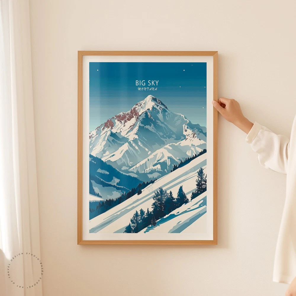 Big Sky Montana Winter Poster Montana City Print Big Sky Montana Wall Art Travel Poster Personalised Gifts Birthday Present Material: Premium luster photo paper Print type: Inkjet printing One side printed + The finish provides the highest possible resolution and color saturation + Lasts up to 200 years in color and 400 years in black-and-white + Printed on high-quality resin-coated photo base paper medium + Posters can be hung with double-sided tape, tacks, or framed + Hand washing with a gentle cry cloth is recommended for extended durability I will hand select the best choice of paper for your chosen design to ensure top quality results for a beautiful, bright and luxurious print. All prints are sealed in cellophane slips for protection during transportation, and are shipped in a protective cardboard envelope.