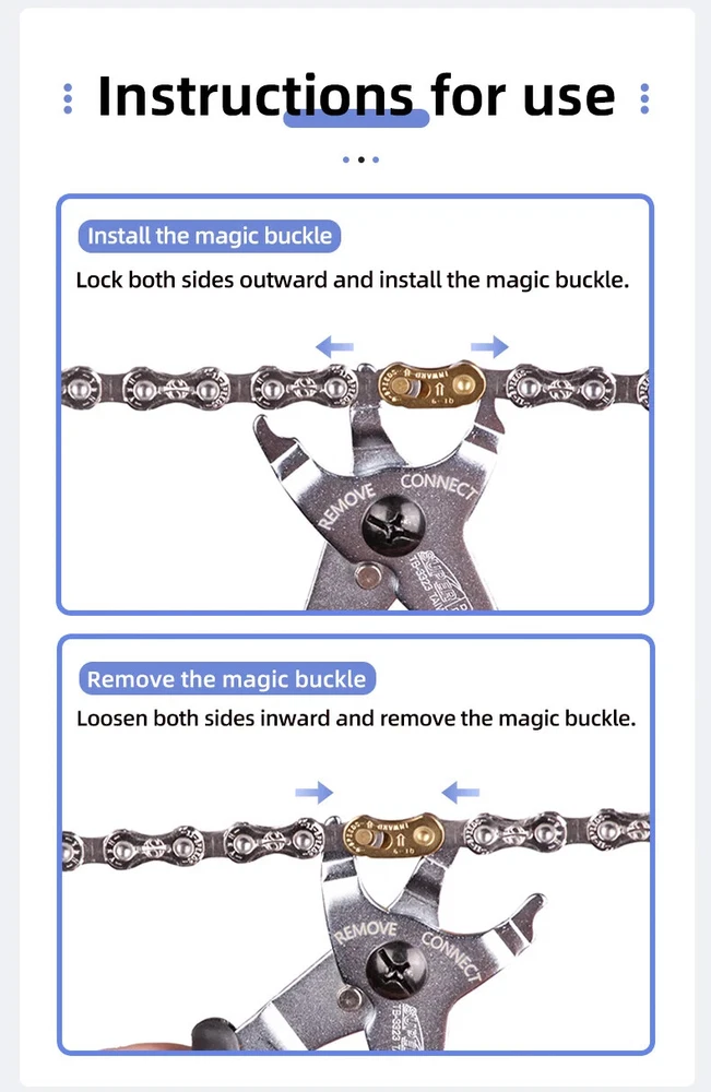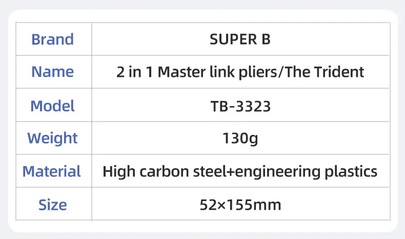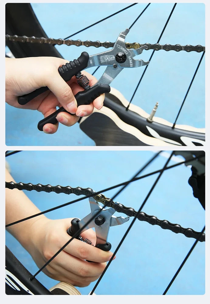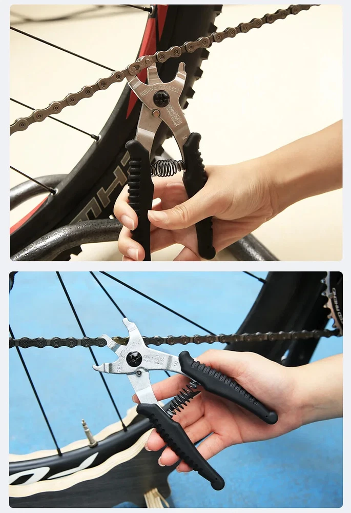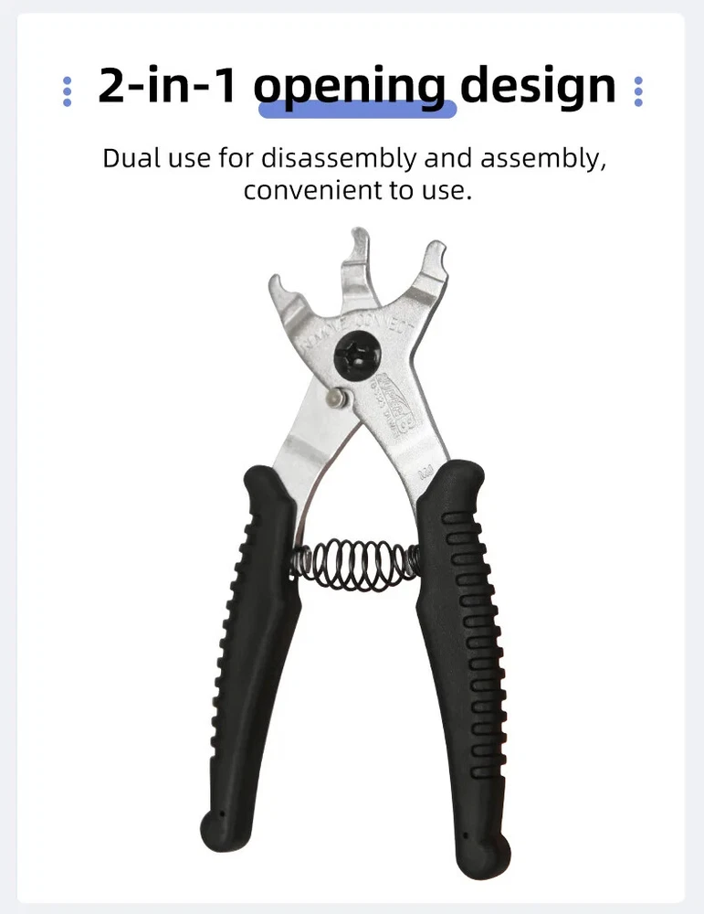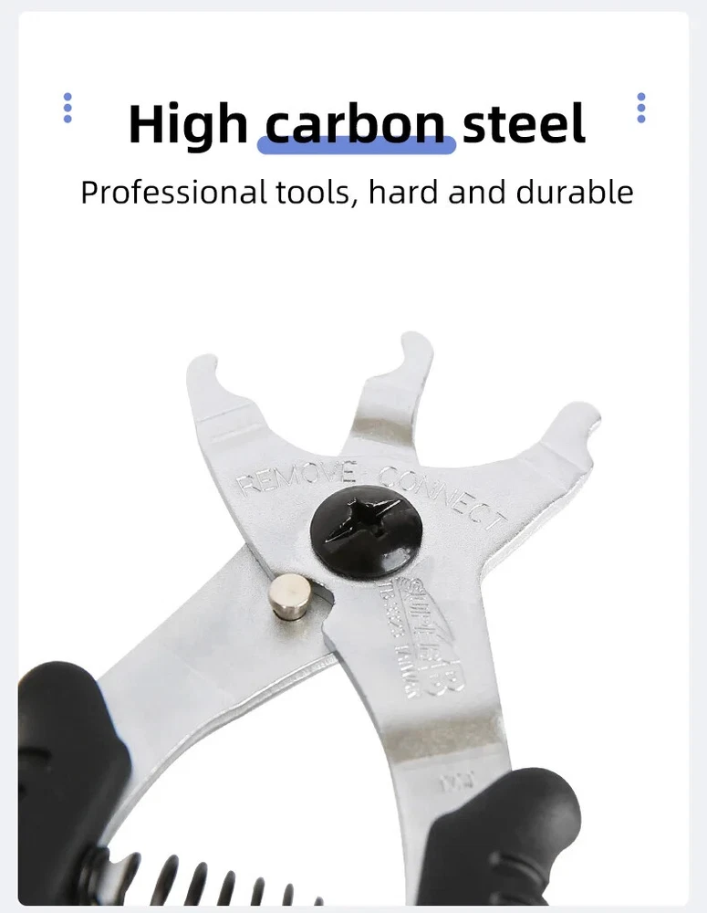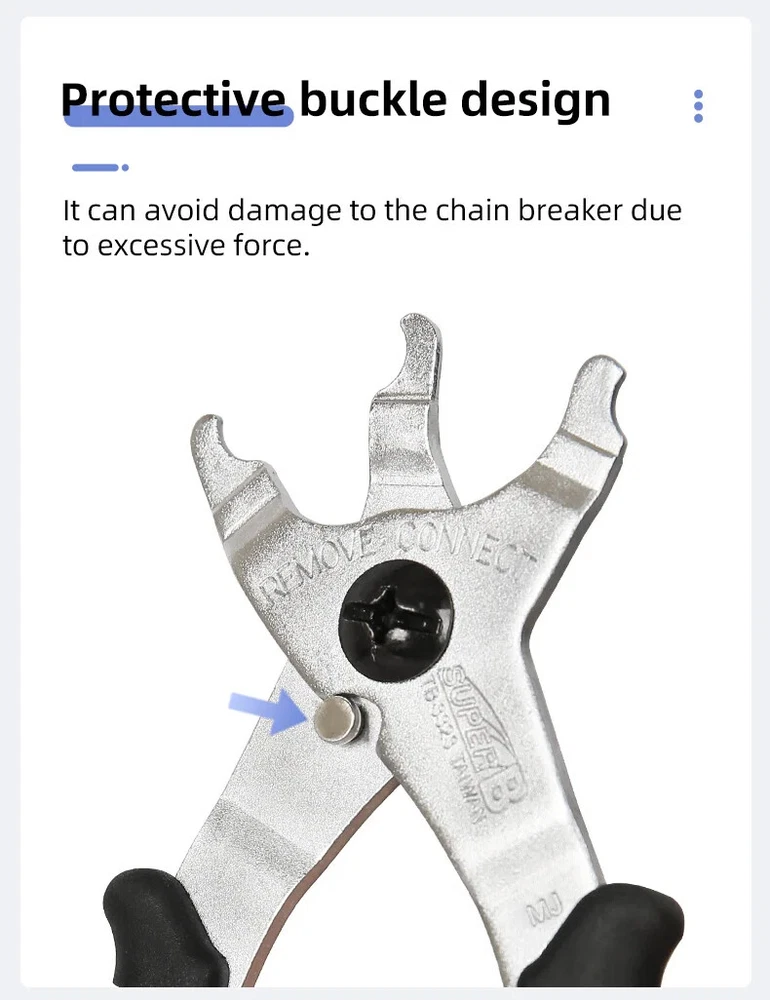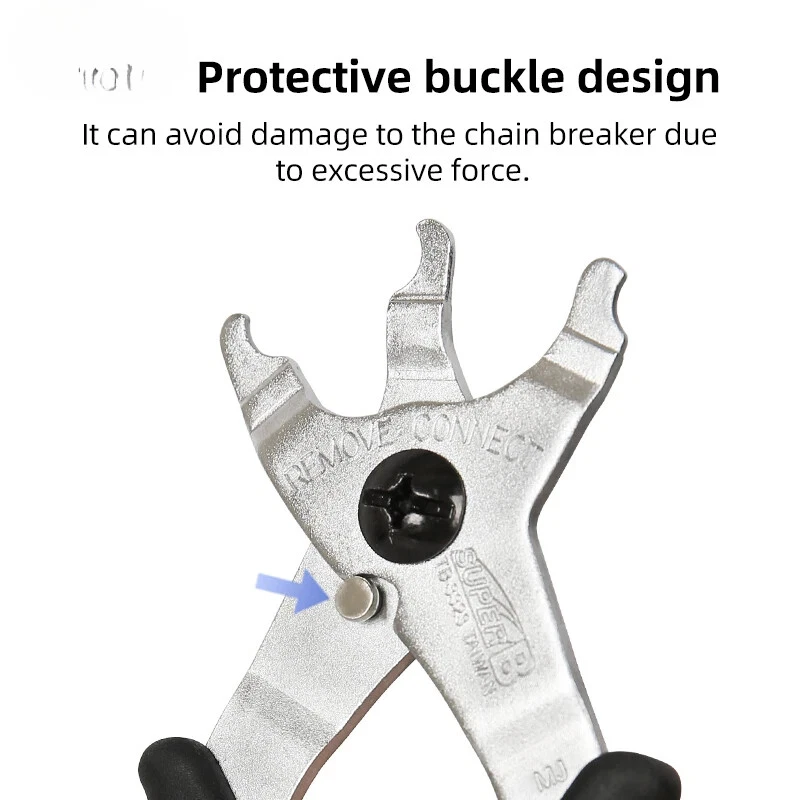 Super B Bike Chain Quick Link Tool with Hook Up Bicycle Link Pliers MTB Road Cycling Chain Clamp Magic Buckle Repair Tool Features: 1.Two-way Clamping Design:Made of high strength steel, more durable and sturdy. 2.Safety Button Design:Prevent excessive opening and kneading of pliers leading to damage of chain magic button. 3.Anti-skid Handle:Hot rubber anti-skid handle, thick anti-skid, strong, comfortable grip. 4.A return spring is ready for the plier to work 5.The plier is wide applied in road, dirt, mountain bikes, MTB, BMX, fixed gear bicycles and etc.