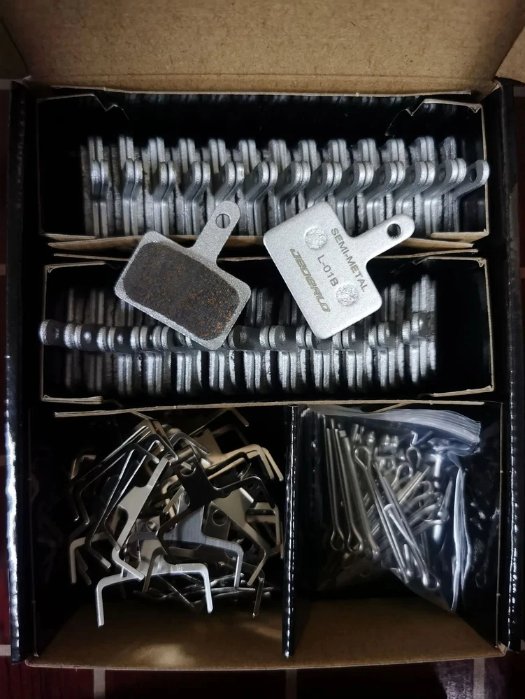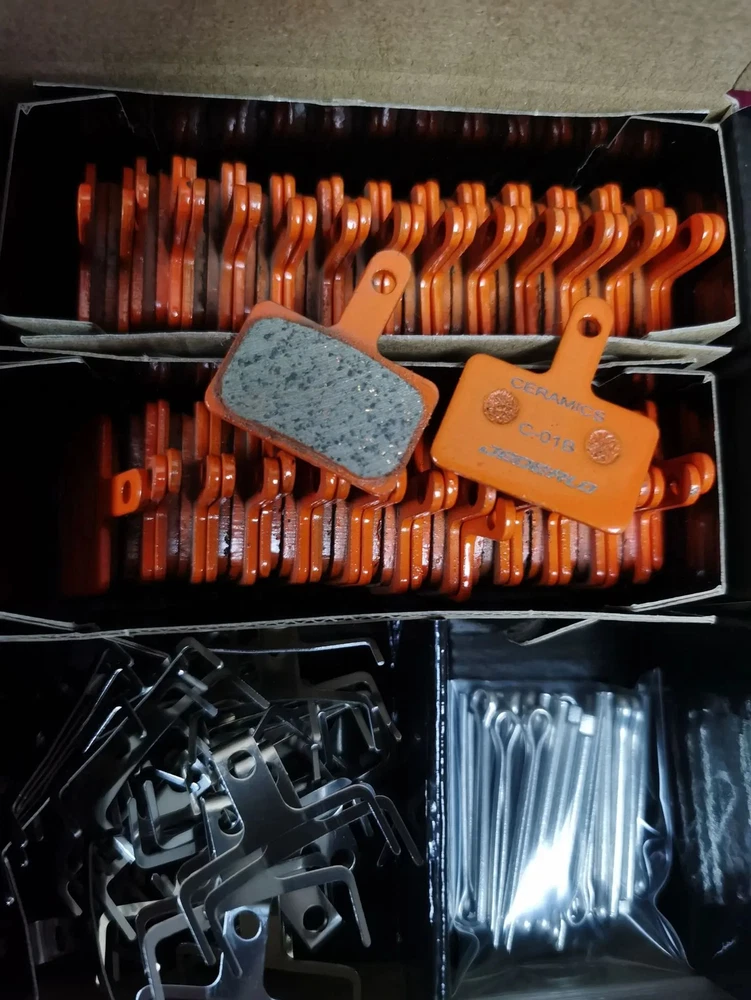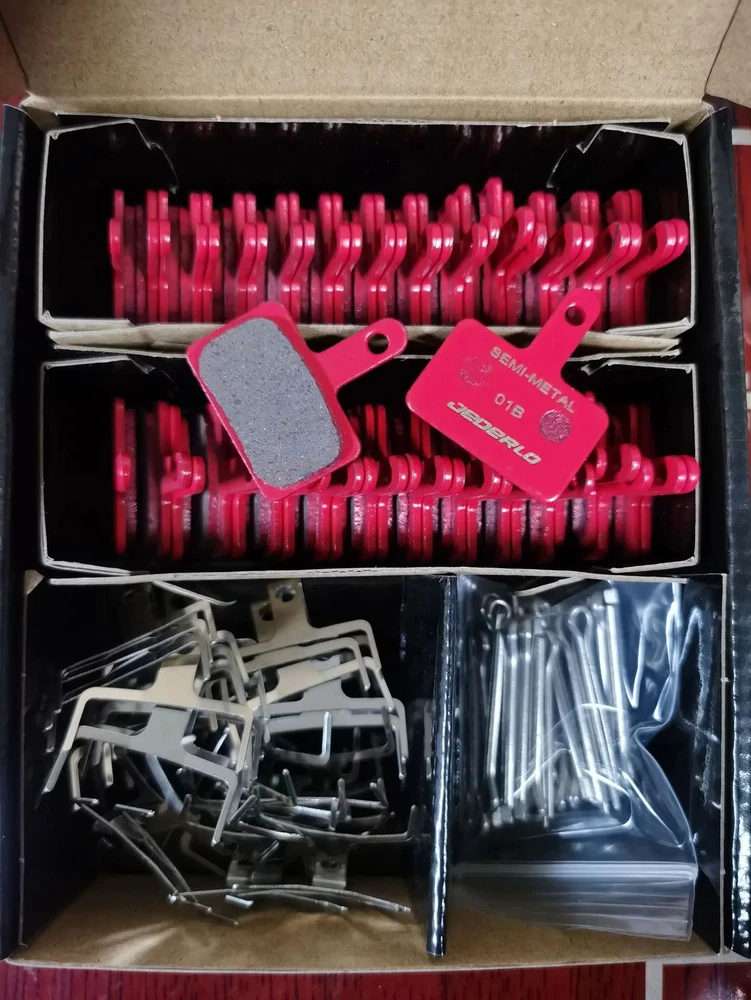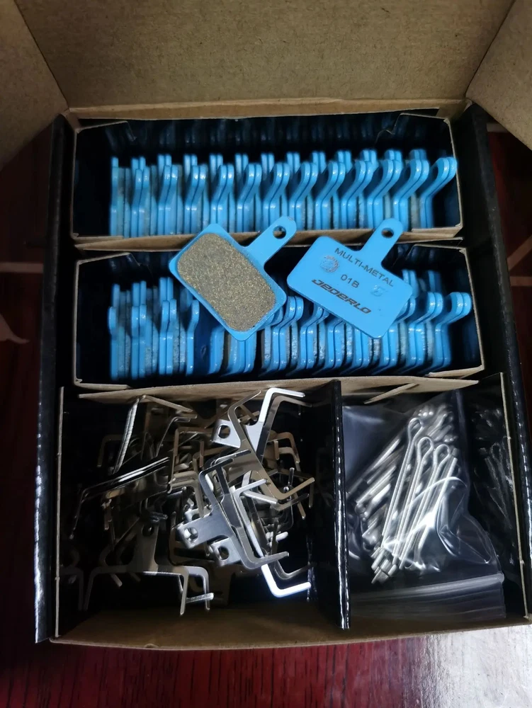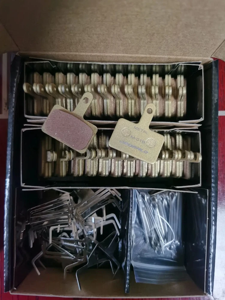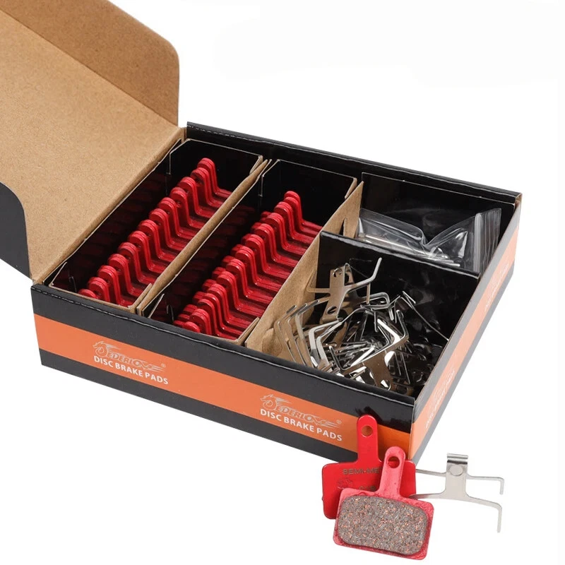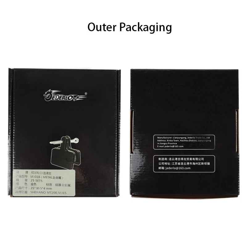 Model: M-01B Material: A:Semi-metal sheet material B:Ceramic sheet material C:Copper substrate material D:Sintered sheet material E:Aluminum plate semi-metal sheet material F:Polymetallic Scope of application: SHIMANO MT200 M315 Quantity: 25 SETS/25 pairs Thickness: 4mm