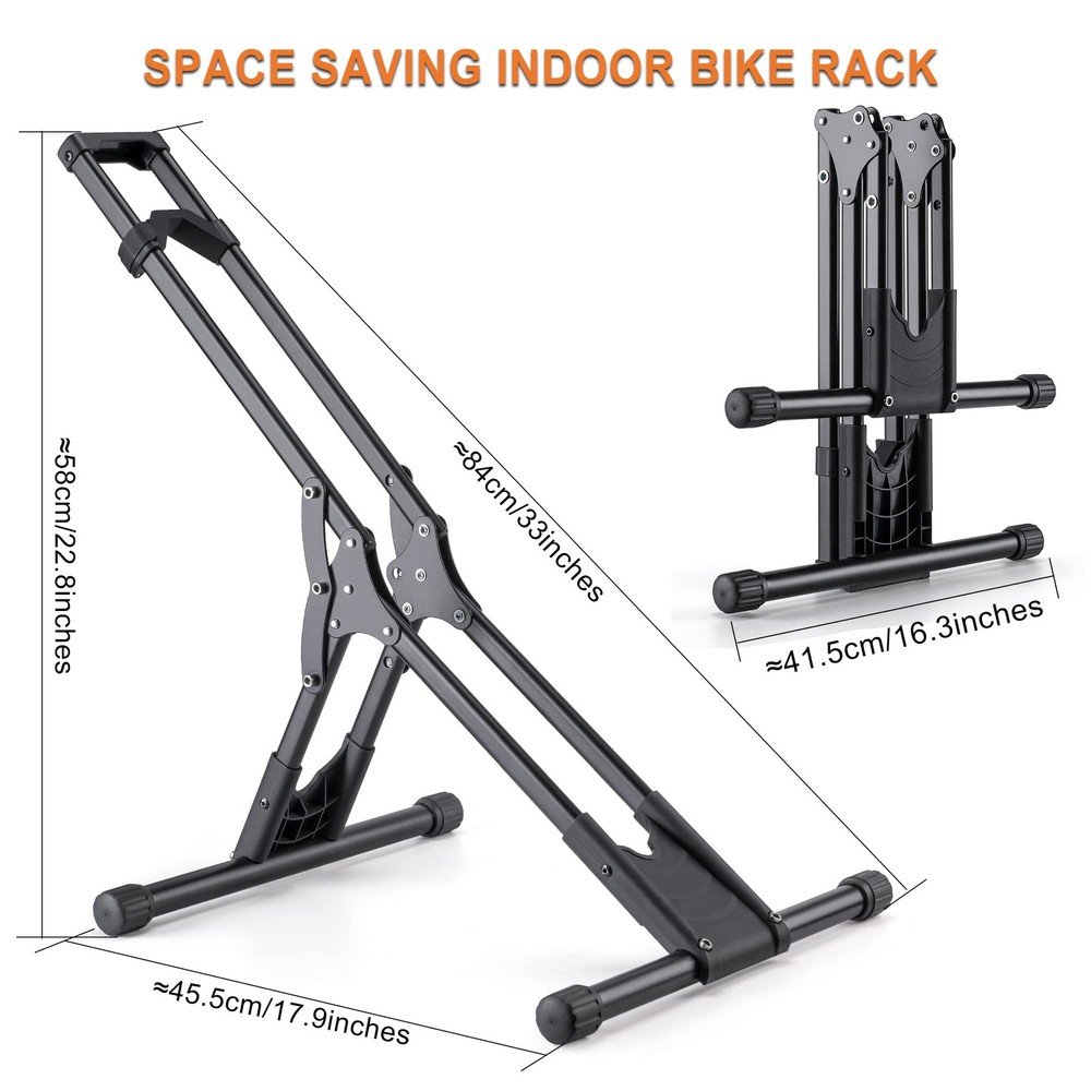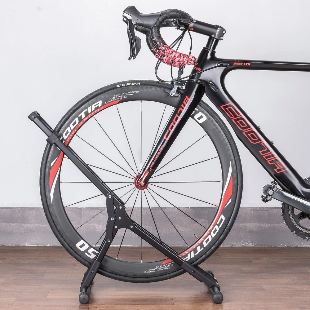 Are you looking for a bike storage solution for your garage or indoor storage space? The bike stand is an impressively user-friendly freestanding floor rack that is also incredibly lightweight and portable to boot. There is no lifting required to load and unload the bike–simply roll it onto the wheel tray. Ideal bicycle storage space for apartments, garages, home or office. IDEAL FREESTANDING BIKE STAND: Are you looking for a bike storage solution for your garage or indoor storage space? The bike stand is an impressively user-friendly freestanding floor rack that is also incredibly lightweight and portable to boot. There is no lifting required to load and unload the bike–simply roll it onto the wheel tray. Ideal bicycle storage space for apartments, garages, home or office. EASY TO USE: The Bike Stand is a unique freestanding model that supports the bike vertically. This design allows for bike parking with front or rear wheel without risk of scratching rims or spokes. Bikes are typically easy to access, and you can usually roll them into and out of the rack with no lifting required. COMPATIBILITY: Fully adjustable slider's positions allow the bike to sit firmly in the rack. The Bike Floor Stand is compatible with 20"-29" road bikes, cyclocross bikes, mountain bikes and hybrid bikes—with any tyre size up to 2.4 inch. It is not recommended for heavy e-bikes though. SOLID & STABLE: This floor bike rack features a wide base that secures the wheel at three touch points for maximum stability. It is a far better way of storing a bike than leaning it against a wall and it keeps delicate drivetrain and disc brake components away from potential knocks and drops. SPACE SAVING INDOOR BIKE RACK: Stop tripping over bikes and reclaim valuable garage storage space with the portable bike holder. With a small footprint, it’s perfect for apartments, garages, basements, sheds or retail bike shop. The 4 rubberized feet prevent the bike parking rack from moving on polished floors