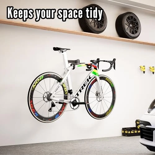 Return Policy Fast Delivery Trusted seller Bike Wall Mount Hanger - Adjustable Horizontal Bicycle Storage Rack for Garage and Home - Metal Hook Holder for Road, Mountain, and Hybrid Bikes Product Description 【SPACE-SAVER】 This storage bike hanger is designed for tiny apartments, garages, and sheds. Keep your space clutter-free while securely storing bikes up to 23kg/50.6lbs. Limited stock available. 【COMPATIBILITY】 Exceptionally wide compatibility: fits road, mountain, hybrid, and city bikes. UNIQUE 32" handlebar adjustment range (vs. standard 31.5"). No fat bikes or step-through frames. 【ADJUSTABLE DESIGN】 90° adjustable valve mechanism (no tools required) to fit bikes with handlebars up to 32" wide. Foldable arm saves space when not in use. Optimized for road, mountain, and hybrid bikes. 【ANTI-SCRATCH & DURABLE】 The hook is fully covered with soft sponge to protect your bike’s frame from scratches. The powder-coated steel surface is rust-resistant, ensuring smooth and long-lasting performance. 【DURABLE CONSTRUCTION & SAFE INSTALLATION】 Constructed with thick steel, this bike rack features a max load capacity of 50.6 lbs (23 kg), suitable for road, mountain, and hybrid bikes. Critical Safety Note: Install only on solid substrates (e.g., studs, masonry, or concrete). For drywall installations, ensure direct support from a stud or reinforcing beam behind the wall. Use appropriate anchors and torque settings for optimal stability. Shipping Returns Payment Shipping Shipping is FREE to all addresses other than APO/PO boxes in the lower 48 states. All our stock ships from US-based warehouses. Shipped via USPS or UPS (depending on location and package weight) Unless stated otherwise, all orders will ship within 24-72 hours of your payment being processed. Check our feedback to see the great reviews of FAST shipping we offer. Returns Seller does not accept returns Payment We currently accept payment via eBay managed payments only. Once payment is cleared, we will dispatch your shipment within 1-3 business days. Please refer to the "Shipping" tab for more information regarding shipping speed to your destination.