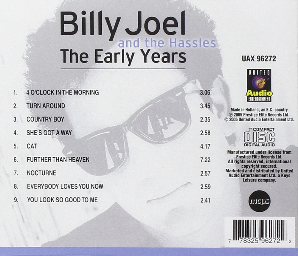 Further Details Title: Early Years Condition: New Format: CD Description: I will ship by EMS or SAL items in stock in Japan. It is approximately 7-14days on delivery date. You wholeheartedly support customers as satisfactory. Thank you for you seeing it. Artist: Billy Joel No Of Discs: 1 Country/Region of Manufacture: USA Record Label: United Multi License EAN: 0778325962722 Genre: Pop Missing Information? Please contact us if any details are missing and where possible we will add the information to our listing.
