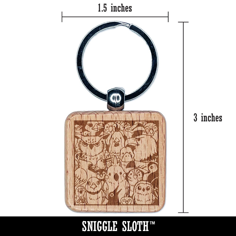 Birds in a Box Engraved Wooden Square Keychain Charm