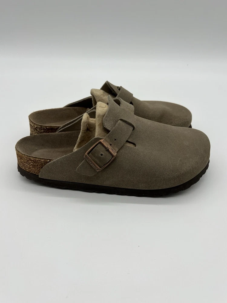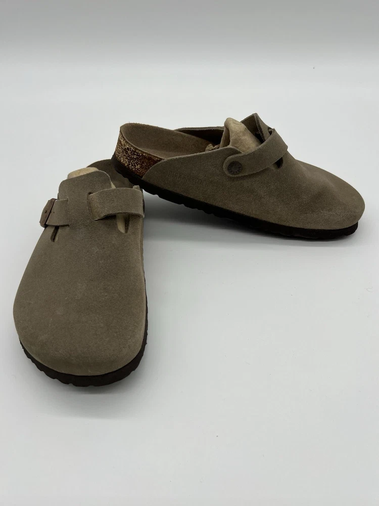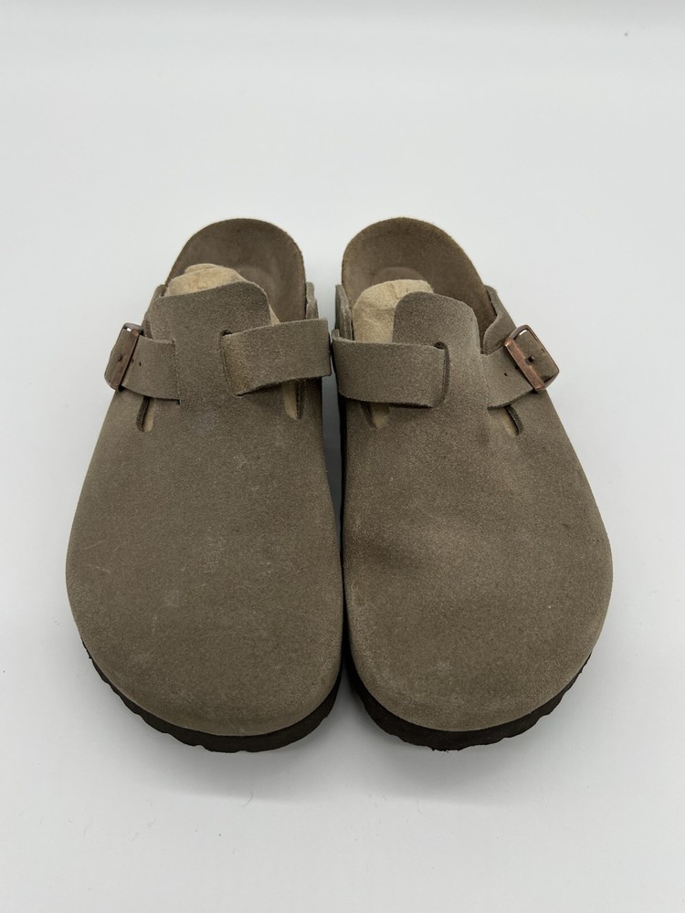 Birkenstock Boston Women’s Size 7 Brown Suede Comfort Slip On Clogs. Shoes are in used condition and have signs of wear but shoes are still in great condition. Upper material is in good condition and clean , inside is clean and the soles are in great condition. Nice comfortable shoes for casual wear. Condition is pre-owned. Shipped with usps priority mail. Sold as pictures. Thank you! Feel free to message me for any questions. Thank you