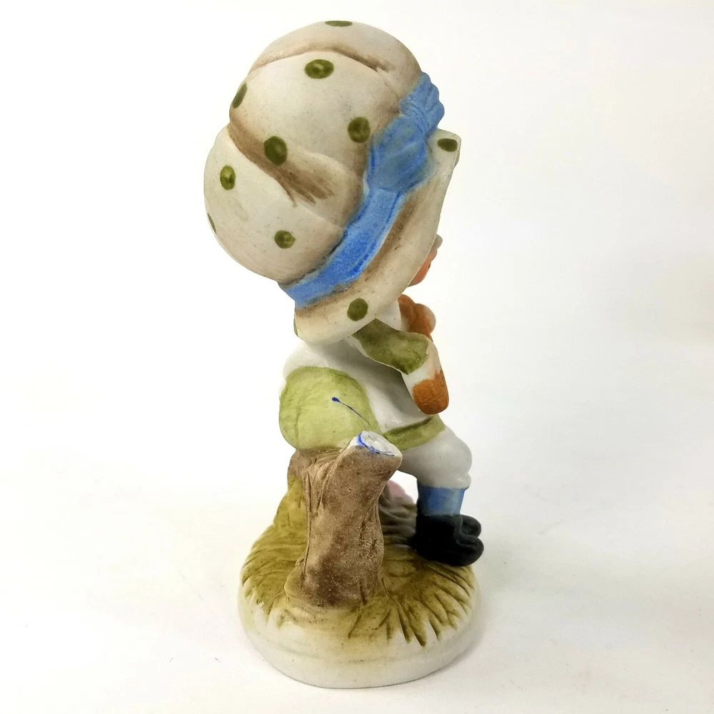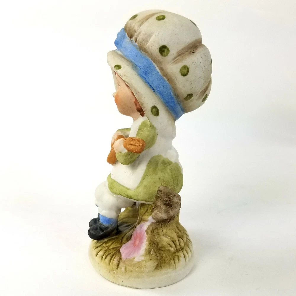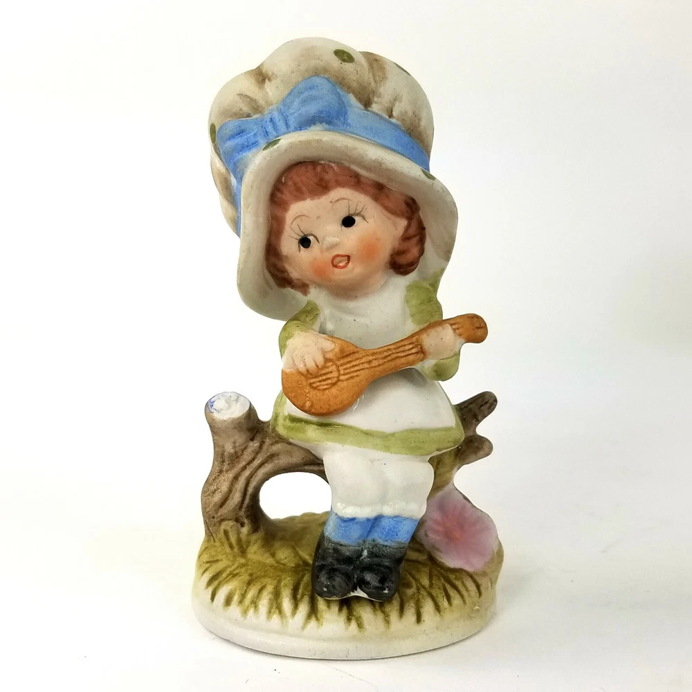 HomeBisque Charming Figurine Girl Playing Guitar Bonnet Hand Painted Pastel Colors