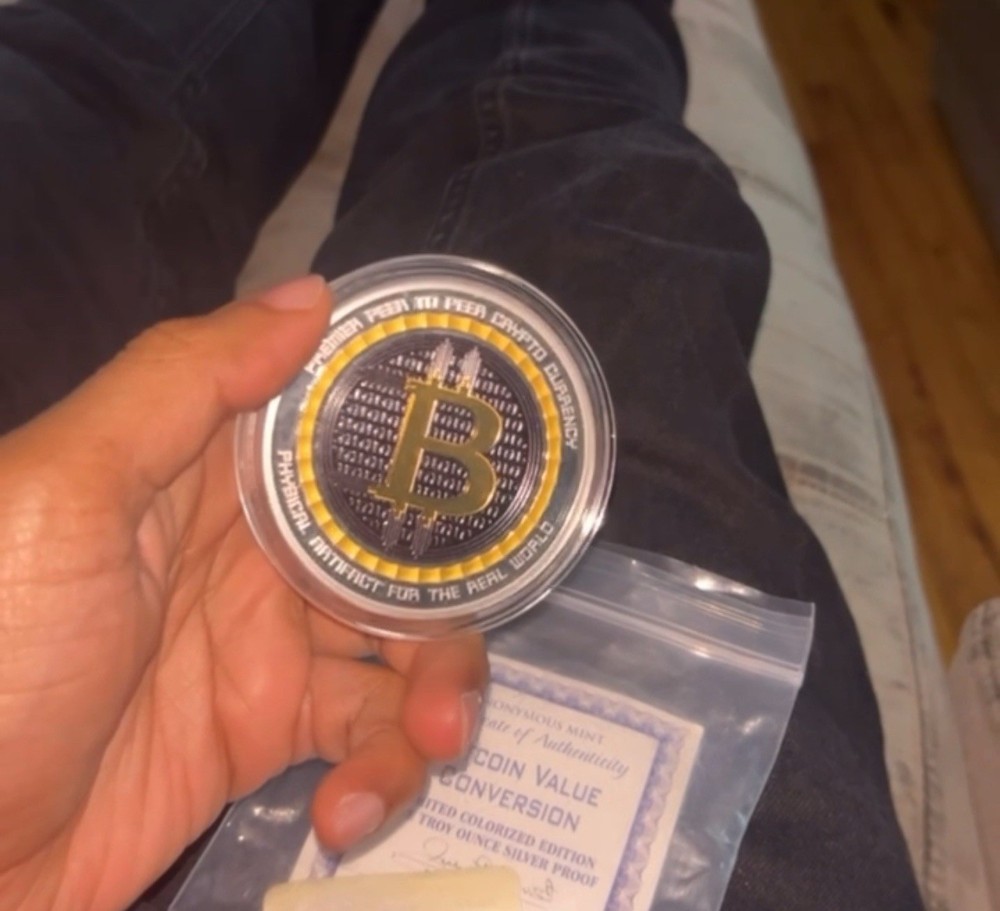 Bitcoin Value Conversion 5 oz Silver Round Colorized Anonymous Mint QR Code HTF!