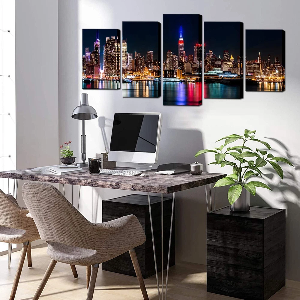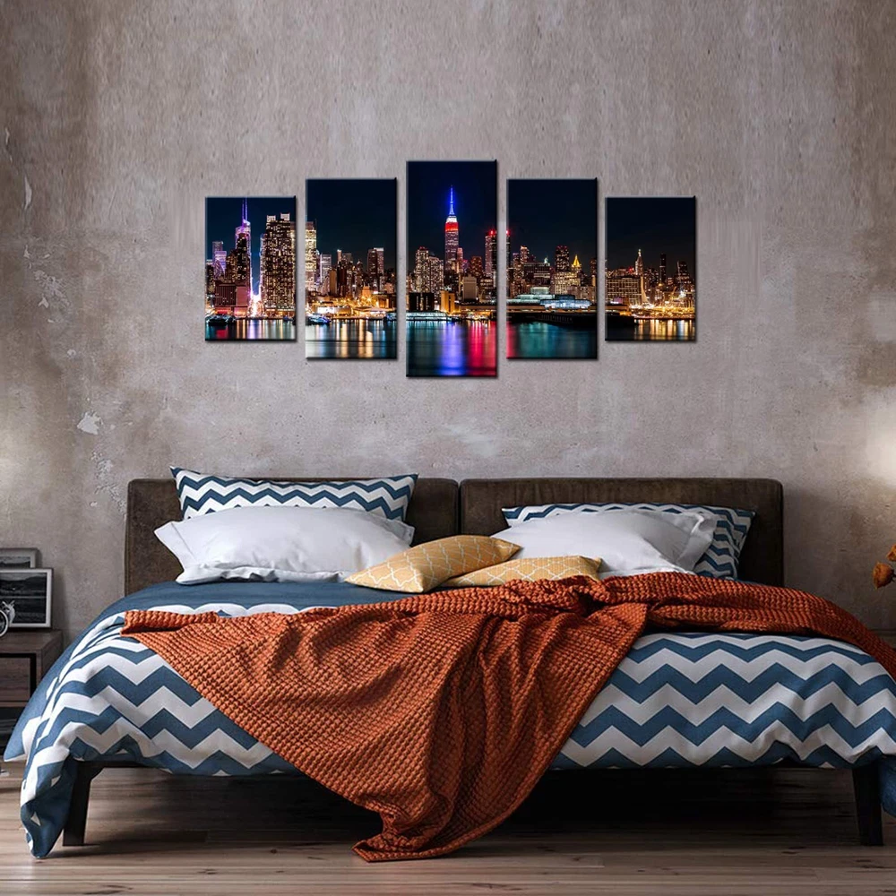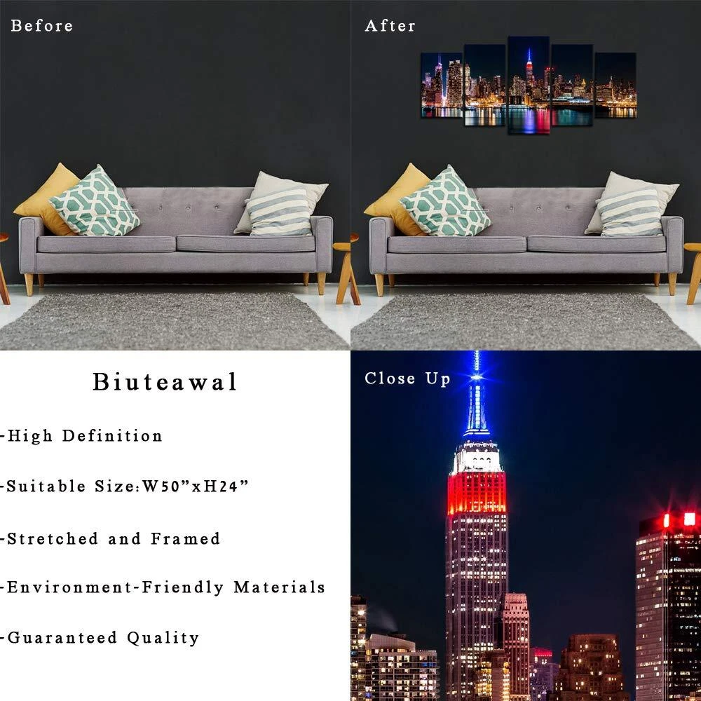 Material: Each piece was printed on waterproof canvas,then stretched on pine frame by hand Packing:Plastic bag and strong carton Decoration: The canvas art could brighten the walls of your home,and relax you after work.Perfect Wall Decoration for home,living Room,Bedroom,kitchen room,bathroom,dining room,office,hotel,restaurant,nurseries,coffee shop,bar,spa,Sauna and so on. Services If you have any questions, please leave your messages,we promise to reply within 24 hours and offer you best services. Gift Idea: Perfect Gift for New Years Day,Easter,Mothers Day,Fathers Day,Halloween,Thanksgiving Day,Christmas,Birthdaywedding,Anniversary,and others. Size:10"x16"x2pcs+10"x20"x2pcs+10"x24".Custom size and design are welcome Easy to Hang:Black hook already mounted on the wooden bar ready to hang out of box Giclee Design:HD printing,no smell,safety and environmentally You only deserve the best artwork:New York City wall decorations paintings for home,office,living room,bedroom,kitchen,dining room,bathroom,hotel,bar etc. 100% Get Satisfaction Guarantee:If you have any questions,please feel free to contact us.Thanks