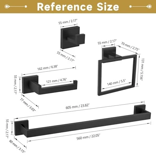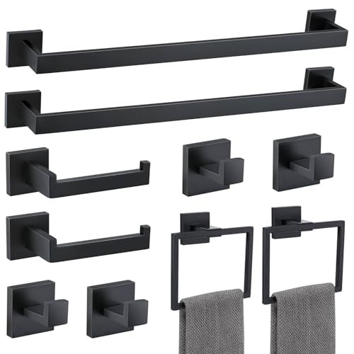 Return Policy Fast Delivery Trusted seller 10 Pieces Bathroom Hardware Accessories Set Black Towel Bar Set Towel Holder Racks Set for Bathroom,SUS304 Stainless Steel,Wall Mounted 23.6-Inch Product Description The matte black 10-Piece bathroom hardware set are constructed from SUS304(18/8) stainless steel which prevents rust and corrosion in your bathroom Towel bar sets bring unrivaled beauty to your kitchen or bathroom and are less prone to spots and scratches The bathroom hardware set is designed with clean lines and sturdy construction. The unique square shape and hidden mounting holes add a touch of modern design to the bathroom, and the chamfered edges protect against scratches This bathroom sets includes 2x 23.6 inch towel bar, 2x towel ring, 2x toilet paper holder and 4x towel hooks. It can be perfectly matched with your toilet and bathroom The unique color combination makes it more distinctive, and we provide combination sets, so you don’t need to spend time selecting accessories one by one If you have any problems with the product, please feel free to contact us and we will solve them for you Shipping Returns Payment Shipping Shipping is FREE to all addresses other than APO/PO boxes in the lower 48 states. All our stock ships from US-based warehouses. Shipped via USPS or UPS (depending on location and package weight) Unless stated otherwise, all orders will ship within 24-72 hours of your payment being processed. Check our feedback to see the great reviews of FAST shipping we offer. Returns Seller does not accept returns Payment We currently accept payment via eBay managed payments only. Once payment is cleared, we will dispatch your shipment within 1-3 business days. Please refer to the "Shipping" tab for more information regarding shipping speed to your destination.