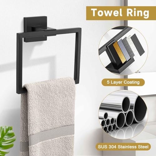 $ 52.535-Piece Matte Black Towel Bar Set Bathroom Accessories Kit