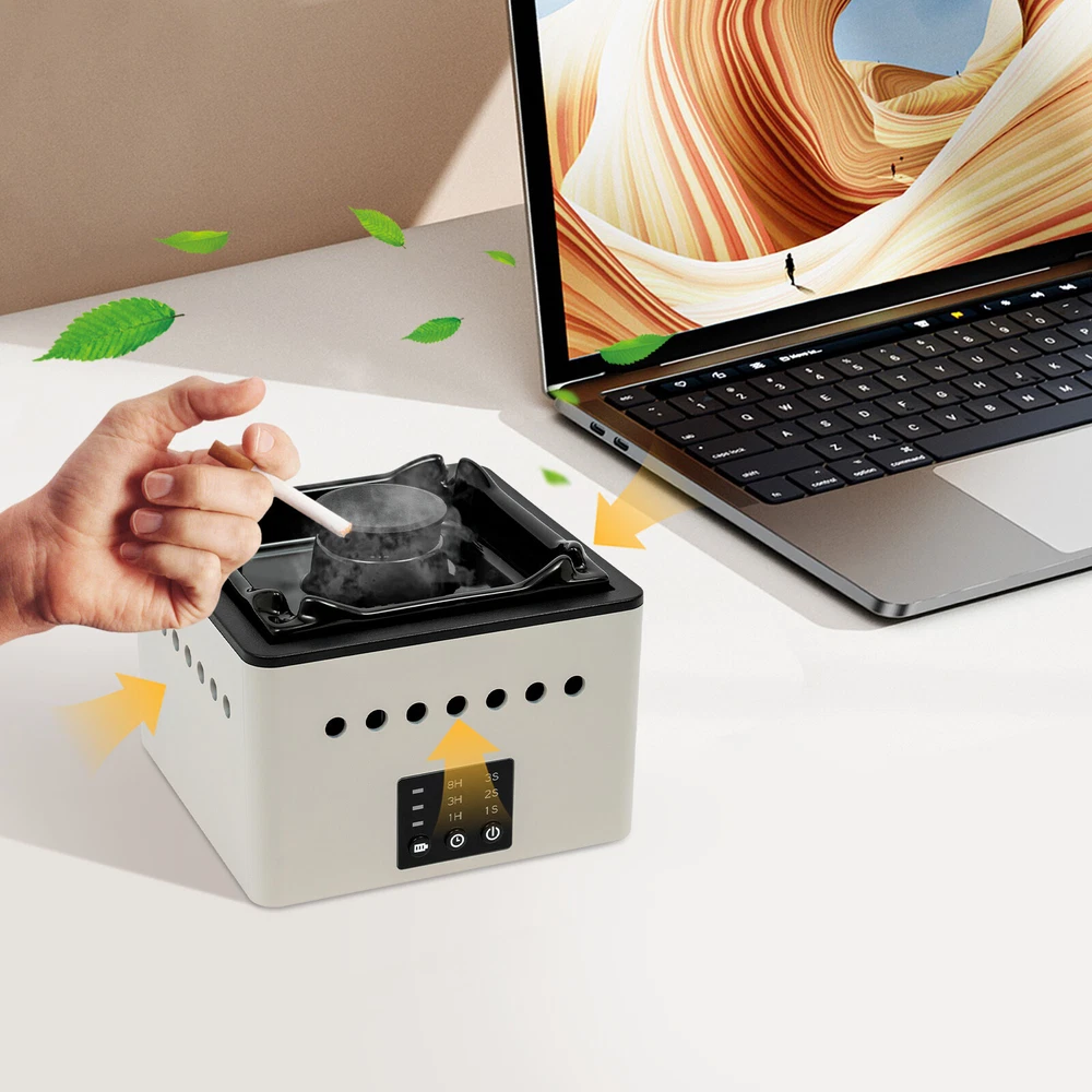 Black 2 in 1 Multifunctional Smokeless Ashtray,Purifier Ashtrays with Filter NEW Description Second-hand smoke is extremely harmful to your family's health, but if you have our ashtray air purifier, you can effectively defend your family's health and facilitate your own smoking needs. It not only brings strong air purification but is also an ideal gift for your father or colleagues! Come and purchase it! Key Features Last and Durable: This product is made of high-quality ABS and ceramics with a painting process, which is strong, durable, wear-resistant, not easy to deform, and has a long service life. Good for Health: The cigarette contains harmful substances such as carbon monoxide, nicotine, acetone, acetaldehyde and ammonia that are harmful to the human body. This ashtray air purifier can quickly purify the air and reduce the harm caused by smoke. 2-in-1 Function: Triple filters can effectively remove indoor odors, formaldehyde, allergens , etc. You can also add essential oils(not included) to create a relaxing and enjoyable environment, while the equipped ashtray can facilitate your smoking use. Powerful Fan: Compared to traditional fans, our upgraded turbo fan paired with multiple holes on the side increases airspeed, purifying the air in multiple ways and reducing the harmful effects of smoke and dust. Thoughtful Design: Clear marks allow you to observe the remaining power, and adjustable purification time and wind speed knobs ensure easy and convenient operation, while the noise level is as low as 30 dB so that you and your family can sleep in healthy and fresh air. In addition, it can also be timed 1/3/8h to meet your usage needs! Lasting Endurance: The included USB cable allows you to charge from a computer, power bank or any 5V USB port, while the 8000mAh battery pack can be fully charged in about 9 hours and has a standby for 20 hours in 1st gear, 15 hours in 2nd gear and 10 hours in 3rd gear to meet your needs. Easy to Clean: With s imple structure, removable ceramic cylinder, and smooth surface, you can wipe it clean with a damp rag. Portable and Space-saving: The compact size (5.9*5.9*3.94 inches) and light weight make it not only easy to carry but also can be placed on a table without taking up much space. Ideal Gift: Thanks to its powerful functions and beautiful appearance, you can give it to your father or colleagues as a Father's Day or birthday gift. Details Cigarette Slot: 4 slots on top for easy placement of cigarettes. Silicone Pads: Four silicone pads on the bottom ensure stability when the product is in use. Application With an application area of 226.04 -322.9ft², it is suitable for homes, offices, hotels, cafes, bars, restaurants, courtyards, cars and so on. Specification Color: Black Fan: Turbo Fan Material: ABS, Ceramics and Silicone Process: Painting Mounting Type: Freestanding Power Source: USB Corded Control Method: Push-button Noise: 30dB Power: 3-5W Rated Current: 5V 2A Applicable Places: Indoor Working Principle: Negative Ion Application Area: 21㎡ -30㎡/226.04 -322.9ft² Air Purifier Air Volume: 50 m³/hour Battery Type: 1*8000mAh Battery(Included) Charging Time: About 9H Working Temperature: -15℃~60 ℃ /5-140°F Time Setting: 1/3/8H Standby Time: 20H (1st Gear), 15H (2nd Gear), 10H(3rd Gear) Product Size: 15*15*10cm/5.9*5.9*3.94 in Packing Size: 23*18*13cm/9.06*7.09*5.12in Gross Weight: 1.3kg/2.87lbs Package Includes 1 * Ashtray Air Purifier 1 * Filter 1 * USB Power Cord 1 * English User Manual Note Please note that this product does not include essential oils. We recommend replacing filters once every 3 months. Please do not block the exhaust outlet of the ashtray. It is recommended to use it in a weak wind environment. Please read the operating manual completely before use. And pay particular attention to the safety instructions included . Please allow the slight color difference caused by the shooting light and 1-3 cm error due to manual measurement, and make sure you do not mind before ordering. Payment Delivery details Terms of sales About us Contact us Payment We accept ebay payment 。 Fees such as import duties, taxes are not included in the item price or shipping costs. These charges are the buyer's responsibility. Delivery details Shipping: 2-9 working days to: USA Terms of sales We maintain high standards of excellence and strive for hundred percent customer satisfaction. Feedback is very important to us. We hope that you contact us immediately before you give neutral or negative feedback, so that we can address your concerns. It is impossible to address issues if we do not know about them! About us Your satis faction is our ultimate goal. We work hard to earn your trust and future business. Our certified technicians have tested each item before shipping. The unit comes with 1 year limited warranty on all manufacturing defects. a) If you receive a defective item, you may return it or ask for a discount. Please contact us within 14 days after you receive the package. b) What you returned must be intact and in its original packaging as re? u. Customer is responsible for shipping costs of the returned item. c) We will cover the cost of shipping back t with the shipping rate indicated in the registration page. We will send you a new unit or refund the full payment you paid. Thank you. Contact us Business Hour Business Hour: Monday To Friday: 8:30 AM to 5:00 PM (Beijing China time) Due to time zones, our reply to your questions may not be immediately. But within above working time, we will reply your email within 24 hours. If it's non-workdays, please kindly be patient and wait till Monday. Please contact us with ebay message. Please feel free to contact us if you have any questions. Monday To Friday: 8:30 AM to 5:00 PM (Beijing China time) Due to time zones, our reply to your questions may not be immediately. But within above working time, we will reply your email within 24 hours. If it's non-workdays, please kindly be patient and wait ti