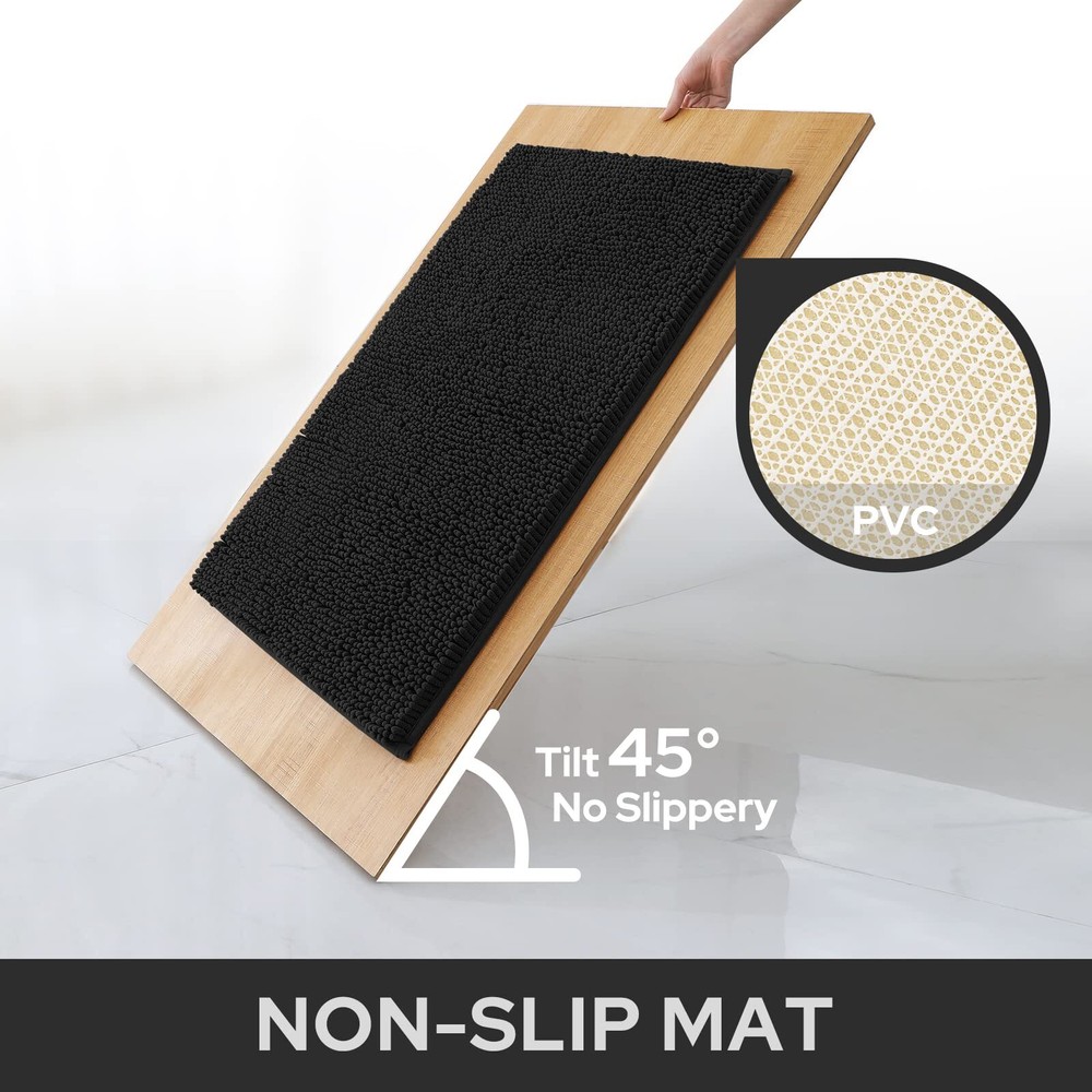 HOMEIDEAS Bathroom Rugs Black 20x32 inch, Ultra Soft and Absorbent Non-Slip Bath Rug, Thick Chenille Plush Machine Washable Shower Floor Carpet LUXURY and COMFORTABLE: HOMEIDEAS luxurious soft bathroom rug is constructed of premium thick, soft, and absorbent shaggy microfibers chenille, The high-density soft microfibers make your feet feel like sinking into a deep shag pile when stepping on it. NON-SLIP: The bottom of the bathroom mat is made of high-quality PVC material, keeping it stay in place without shifting and skidding. It is much stronger and durable for long-lasting use without getting peel off after several washes. Place rug on clean dry smooth floor only, ensure the bottom of the rug is dry and clean before use, water or dust under the rug can cause slipping. ULTRA ABSORBENT: These upgraded shag rugs can soak up the water efficiently with high-pile, thick Chenille fabric, and lock the moisture in the carpet to keep your feet dry and warm after the shower or bath. Perfect for the bathroom (tub-side, shower room, front of sink), bedroom, kitchen, and living room. EASY CARE: Machine wash on cold with mild detergent. Use only non-chlorine bleach when needed, hang to dry, or air dry flat. Do not Bleach. MORE SIZES: HOMEIDEAS bathroom rugs come in different sizes to fit every part of your home! SHIPPING Domestic Buyers - We have confidence in our products, but if you are not fully satisfied please contact us within 30 days of purchase and you will get full refund. - We ship within 3 business days of payment, usually sooner - We offer FREE shipping on all orders! - We only ship to the lower 48 states, no APO/FPO addresses or PO Boxes allowed International buyers – please note: Import duties, taxes, and charges aren't included in the item price or postage cost. These charges are the buyer's responsibility. - Please check with your country's customs office to determine what these additional costs will be prior to bidding or buying. * Order Cancellation Policy ** You can return a product for up to 30 days from the date you purchased it. 1. The seller reserves the right to cancel the special case only due to eBay cancellation fee. 2. The decision of seller is the final. 3. The seller will respond to the cancellation request within 2 business days. Please wait for the result of cancellation. 4. In case the cancellation is not completed by some reasons, the buyer can follow the options below to get the refund. 4.1 The buyer can reject the item when it arrives. 4.2 The buyer can send the item back to the seller within 30 days If the buyer receives item (USA Shipment ONLY). The seller will provide the FREE return label to the buyer when the buyer opens " Return Item" case on eBay by using the reason as "Change my mind" ONLY. 5. When buyer has placed the order. The order will be processed and completed by automatic warehouse system within 5 minutes. In case that buyer sends the cancellation request after 5 minutes of placing the order, the request will be rejected. **Sending direct message to cancel the order is not allowed for every case.* Return Policy For the return case - If buyer would like to return the items for refund or replacement, please CONTACT SELLER to receive the free return label from seller. The refund or replacement will be processed with the tracking number of return label which is provided by seller only. The other ways of return which are not approved by seller will not be processed for the refund or replacement.