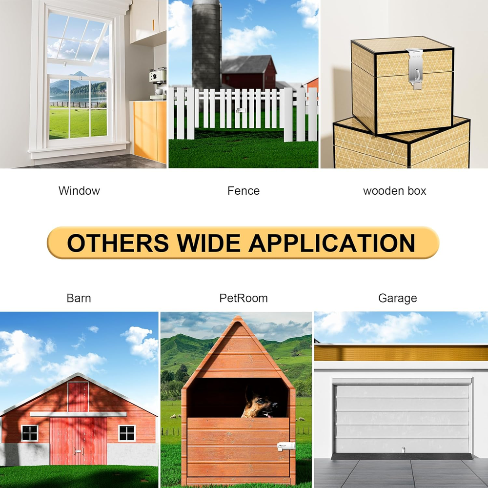 [SUS304 Stainless Steel] The lock hasp constructed from h-q solid SUS304 Stainless Steel, Ensuring quality and longevity, Strong and durable, not easy to rust and oxidation. [Safety、Simple and Practical] Simple and practical design, can be used with padlock, more secure and reliable [Multiple Sizes/Colors Available] 84 x 39 x 23mm/3.3" x 1.54" x 0.92"(L*W*H); Mounting Hole Diameter: 5mm/0.2" [Thicker Steel Material] Heavy duty thicker solid stainless steel material, strong and durable, not easy to break [Easy To Install] Package Content: 1 x Hasp Lock and 8x Screws;It only takes a few minutes to install; Suitable for all kinds of cabinets, wardrobes, fence, drawers, barn, boxes, outdoor, Windows, sliding doors and so on Product Description The video showcases the product in use. The video guides you through product setup. The video compares multiple products. The video shows the product being unpacked. 1 INTERIOR DOOR 2 DRAWER 3 WOODEN BOX 4 WINDOW 5 BARN 1 GARAGE 2 FENCE 3 PET ROOM MORE ABOUT DETAILS 1 2 3 4 5 6 OUR HOME COURT Add to Cart Add to Cart Add to Cart Add to Cart Add to Cart Customer Reviews 4.6 out of 5 stars 2,688 4.5 out of 5 stars 160 4.4 out of 5 stars 632 3.6 out of 5 stars 14 4.4 out of 5 stars 2,307 4.3 out of 5 stars 3,097 4.4 out of 5 stars 1,556 Price $7.99 $ 7 . 99 — $9.59 $ 9 . 59 — $7.95 $ 7 . 95 $7.95 $ 7 . 95 $7.99 $ 7 . 99 SUS304 SS ✔ ✔ ✘ ✘ ✔ ✔ ✘ Heavy Duty ✔ ✔ ✔ ✔ ✔ ✔ ✔ Safe and Practical ✔ ✔ ✔ ✔ ✔ ✔ ✔ Customizable ✔ ✔ ✔ ✔ ✔ ✔ ✔ Easy To Install ✔ ✔ ✔ ✔ ✔ ✔ ✔