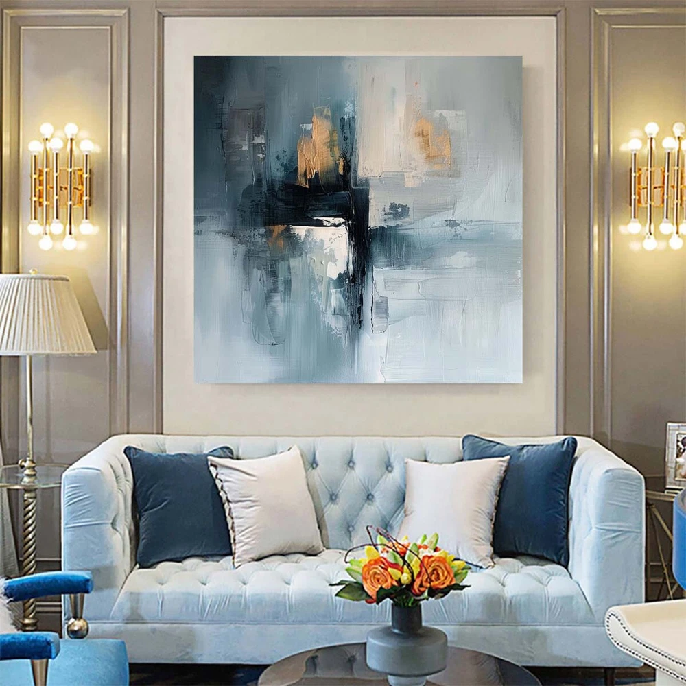 Black Abstract Handmade Modern Oil Painting On Canvas Painting Palette Blue Art