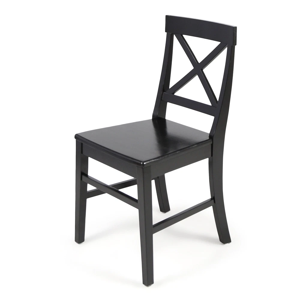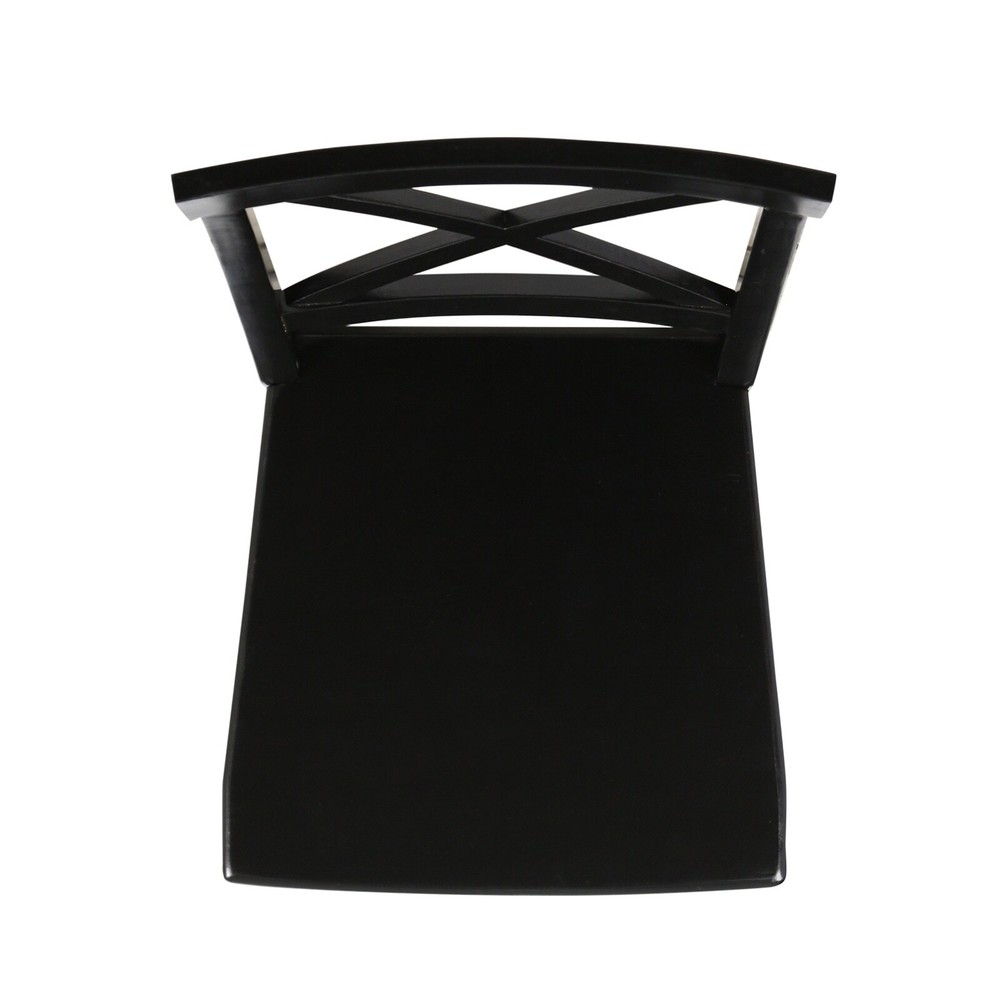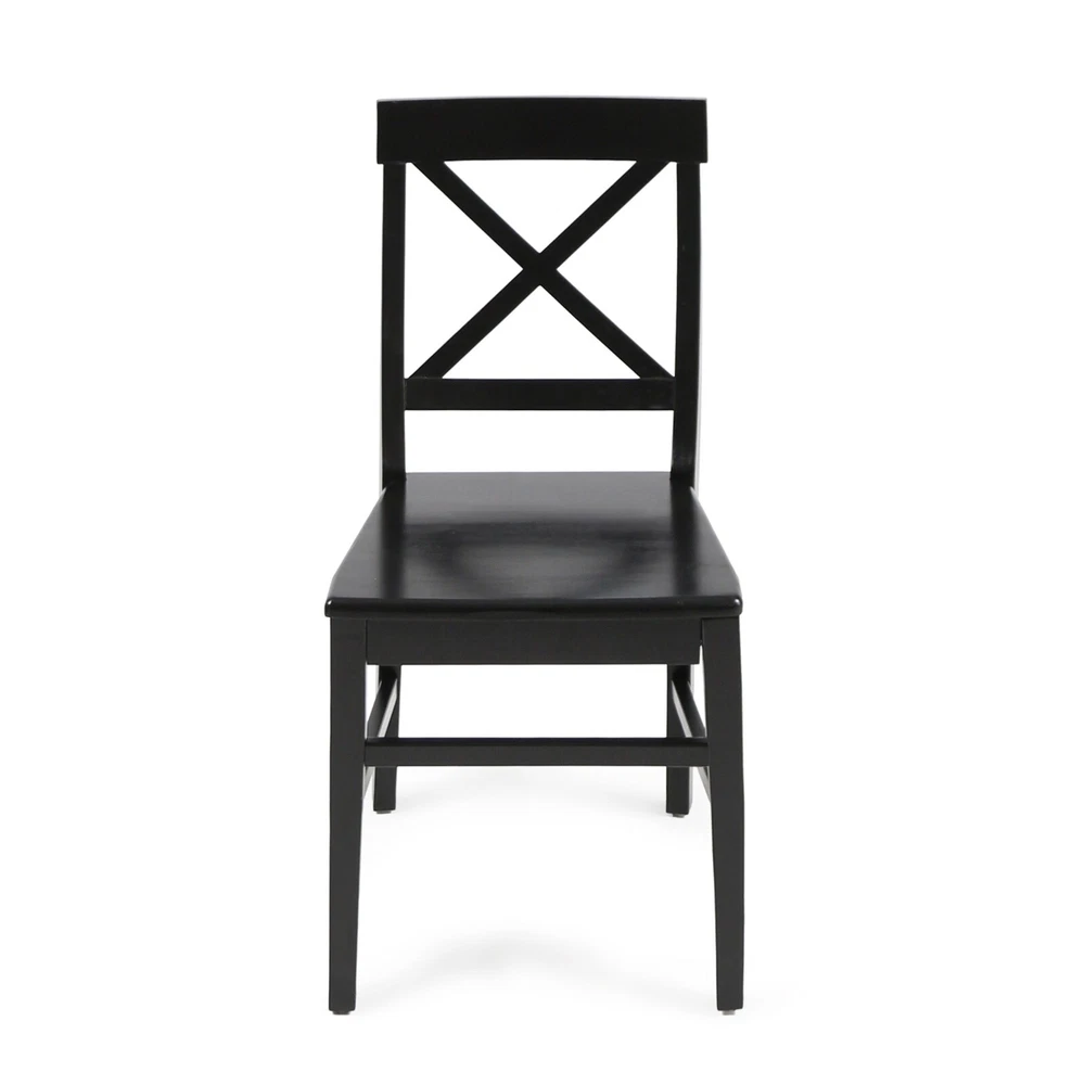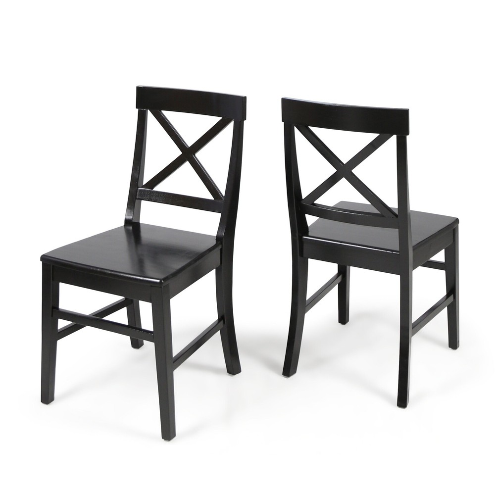 Product Information Main Color: Black Main Material: Acacia Wood Product Dimensions Item Length (in.): 17.75 Item Width (in.): 21.00 Item Height (in.): 35.50 Weight (lbs.): 13.23 Package Size Length (in.): 41.75 Width (in.): 20.75 Height (in.): 10.00 Weight (lbs.): 35.96 Product Features These farmhouse dining chairs are a great way to add some rustic style to your home. Built to match the classic farmhouse chair seen in movies and shows from your childhood about farm life, these chairs are sure to be a hit at any and all hosting events. Made from acacia wood, these chairs are a must have. Includes: two (2) dining chairs. Material: Acacia wood. Finish: Black Assembly required. Dimensions: 21.00 inches deep x 17.75 inches wide x 35.50 inches high. Seat width: 17.75 inches Seat depth: 17.75 inches. Seat Height: 18.00 inches
