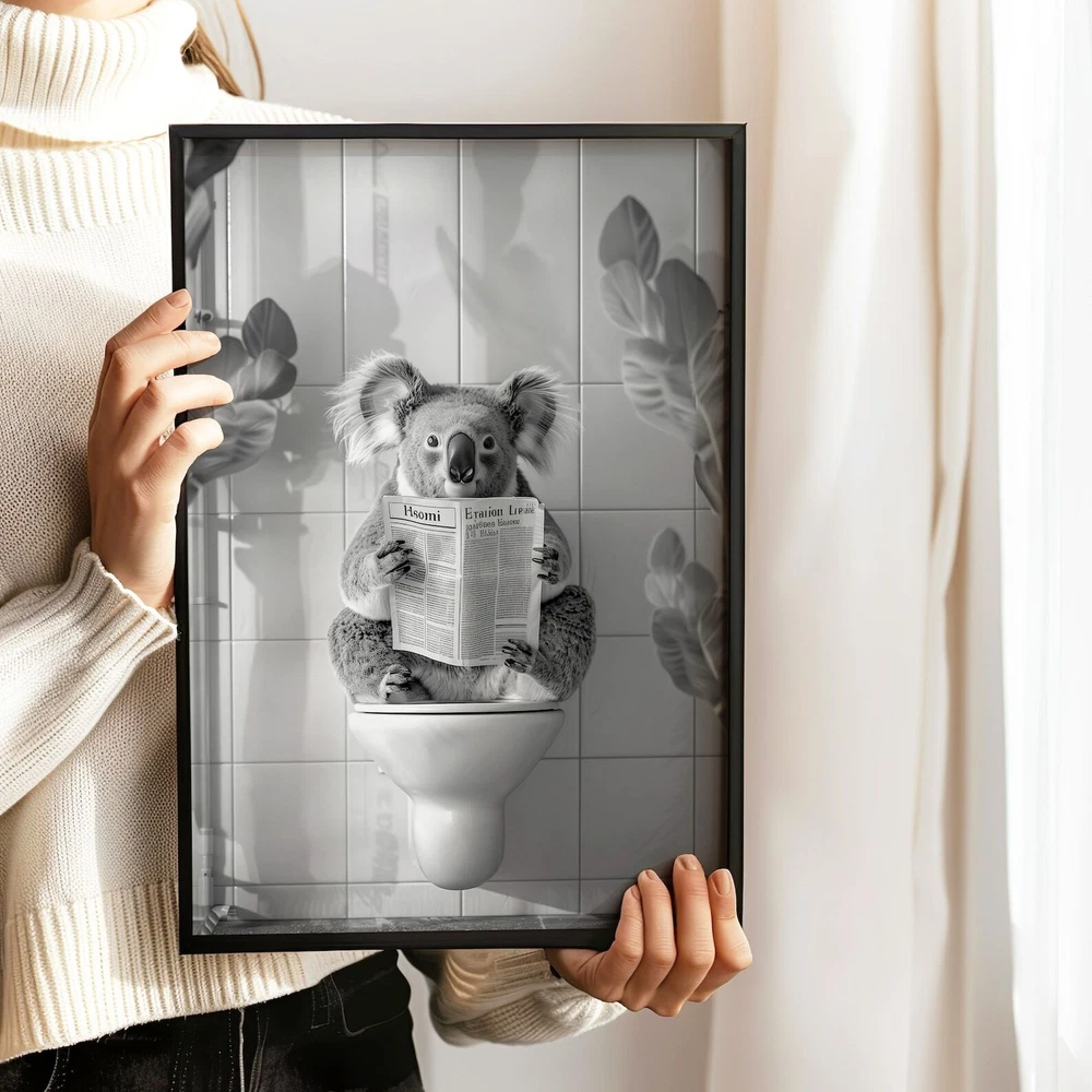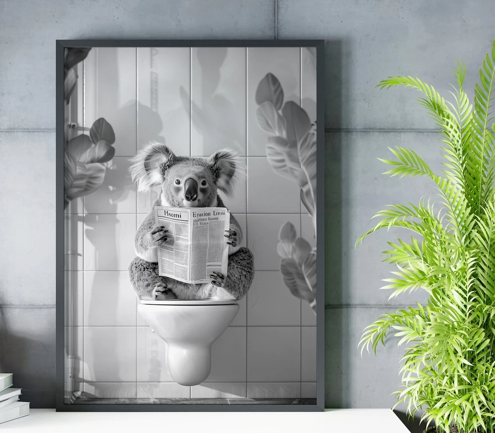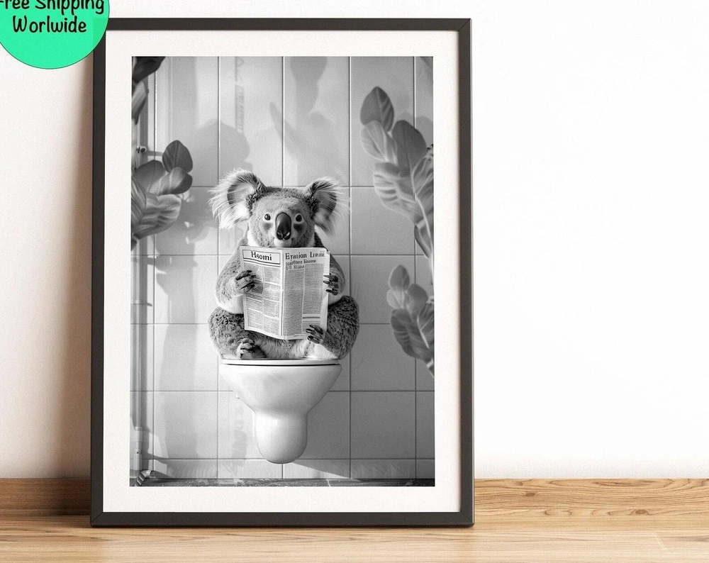 Black And White Koala Reading On Toilet Funny Posters Bathroom Wall Art Toilet Poster Toilet Wall Art Koala Poster Bathroom Wall Decor Material: Premium luster photo paper Print type: Inkjet printing One side printed + The finish provides the highest possible resolution and color saturation + Lasts up to 200 years in color and 400 years in black-and-white + Printed on high-quality resin-coated photo base paper medium + Posters can be hung with double-sided tape, tacks, or framed + Hand washing with a gentle cry cloth is recommended for extended durability I will hand select the best choice of paper for your chosen design to ensure top quality results for a beautiful, bright and luxurious print. All prints are sealed in cellophane slips for protection during transportation, and are shipped in a protective cardboard envelope.
